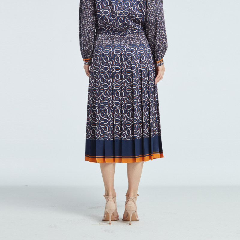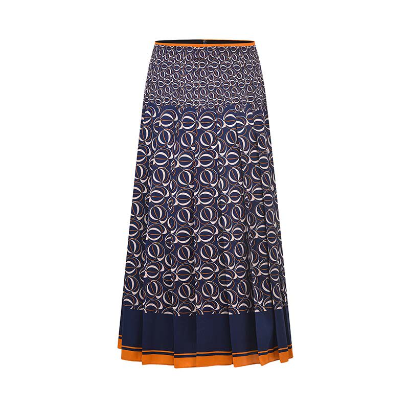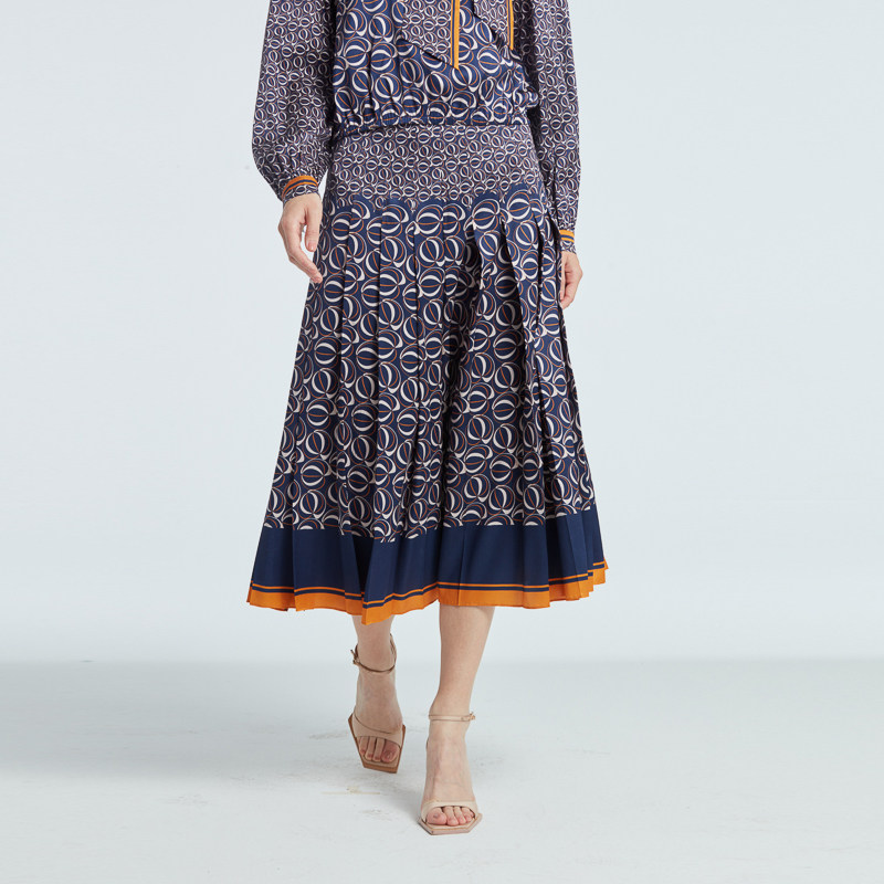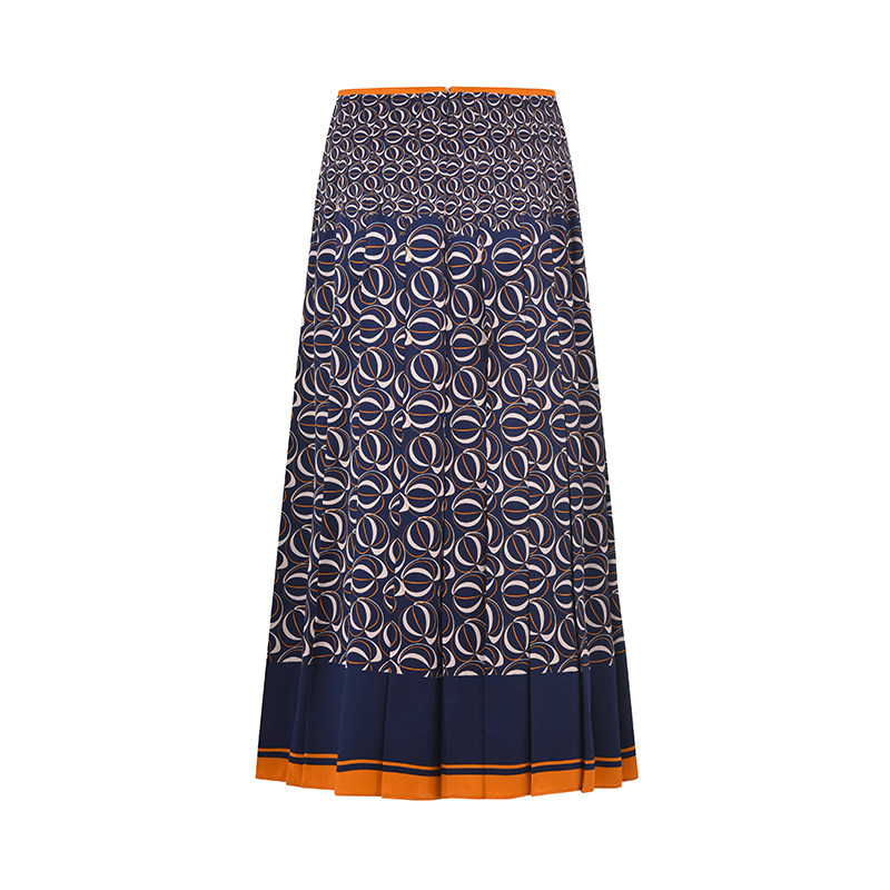 RARE威雅女装 秋季新款撞色印花百褶女士半裙 RR2236464507