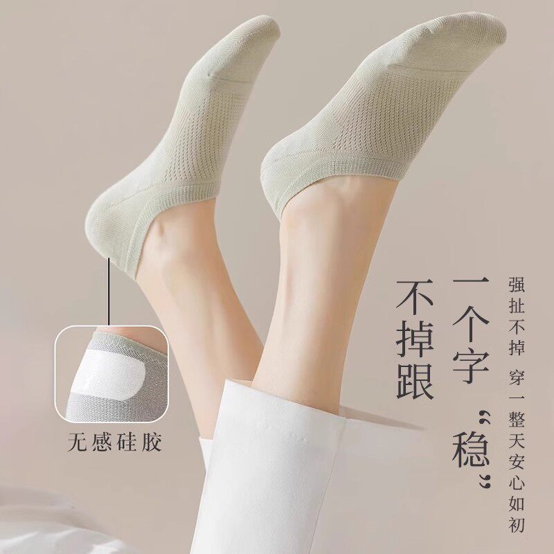 诸暨袜子女夏季薄款纯棉浅口隐形船袜硅胶防滑不掉跟网眼短袜吸汗