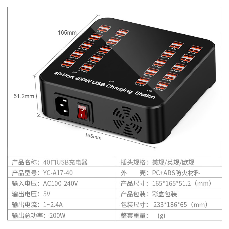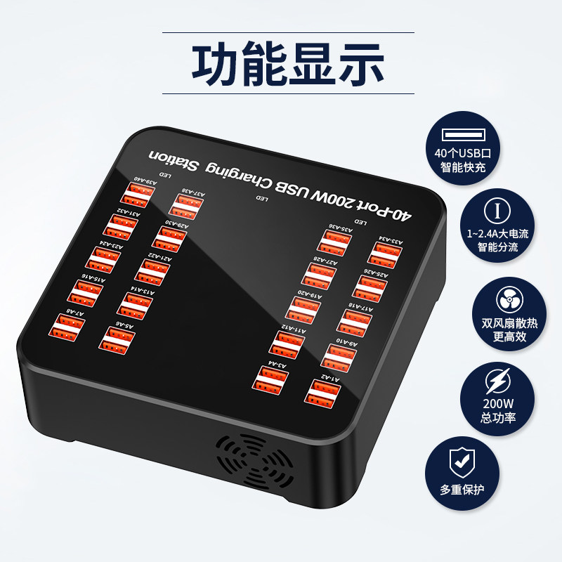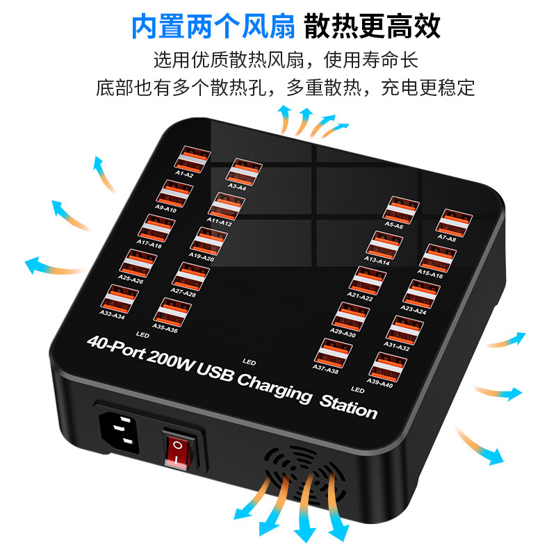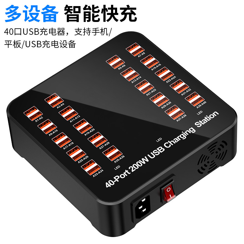 usb多口工作室挂机40口USB多孔充电器200W40A手机平板电脑智能学校充电桩插排座2.4a