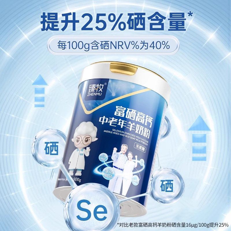 臻牧中老年人羊奶粉富硒高钙乳钙正品官方800g成人送礼盒