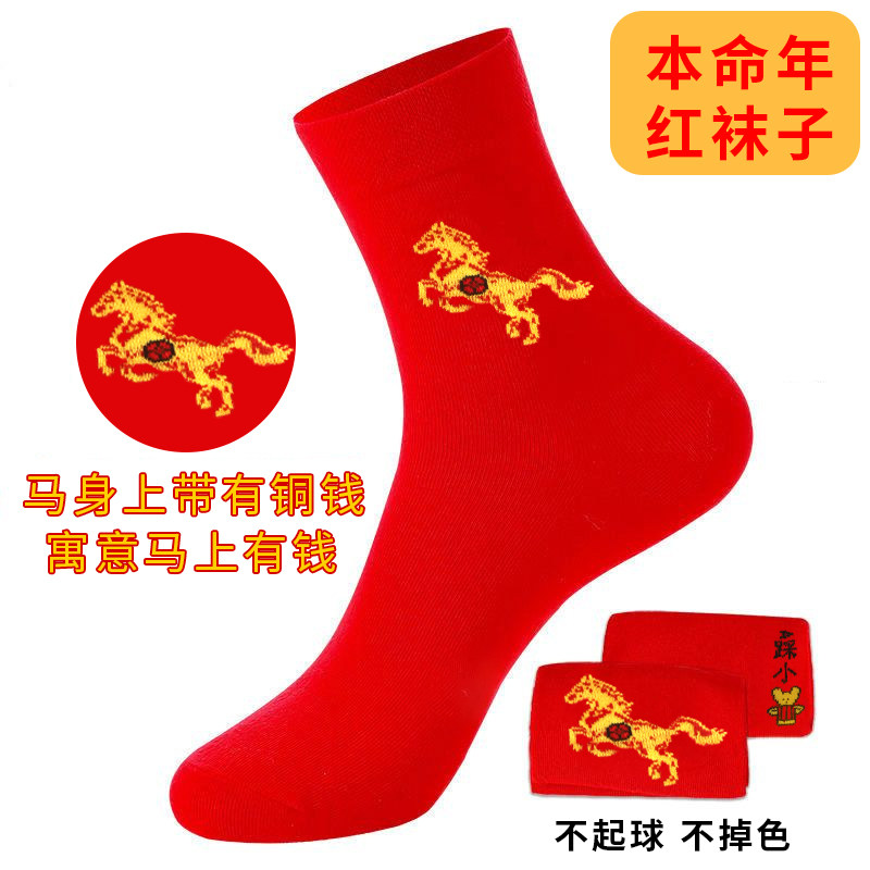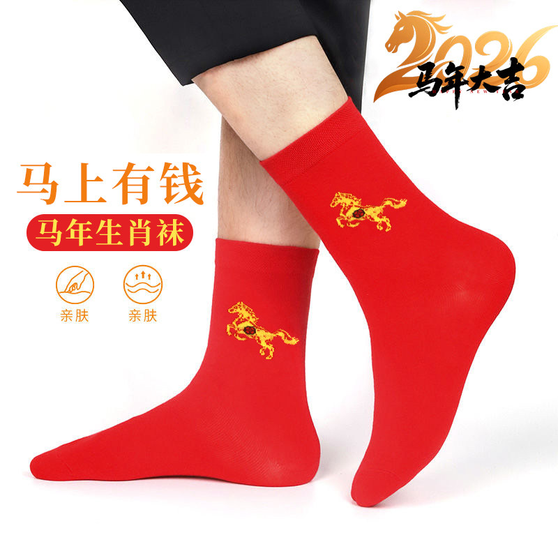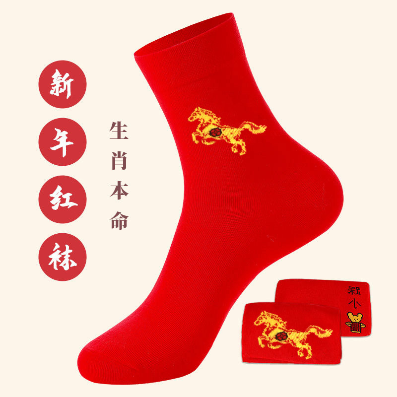 2026本命年红袜子新年高筒大红袜男女马年生肖纯棉袜子防臭不掉色