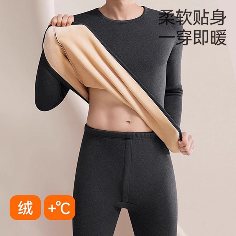 中高领保暖内衣男士加绒加厚套装大码德暖绒秋衣秋裤打底棉毛衫冬
