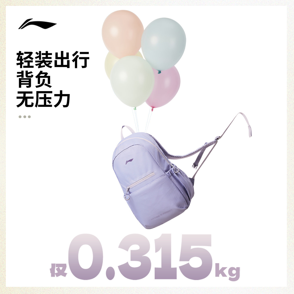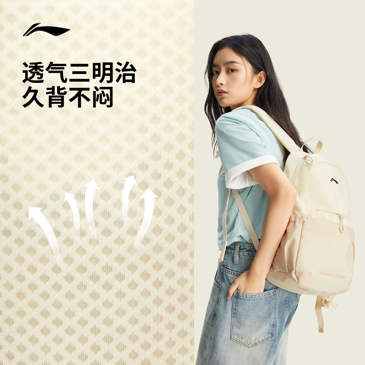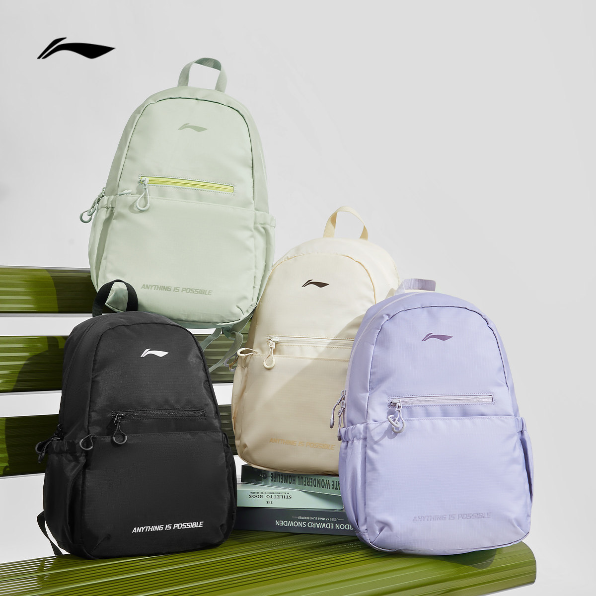 李宁双肩包男女新款防泼水通勤旅游黑色背包学生运动轻量百搭书包