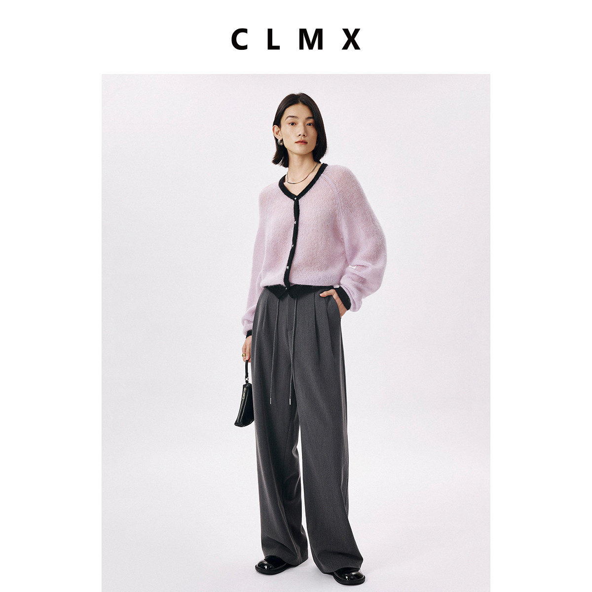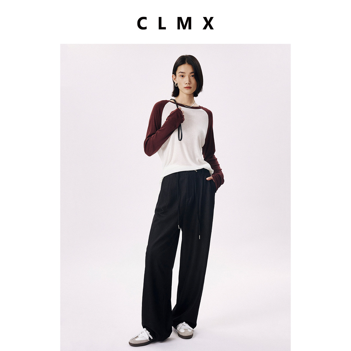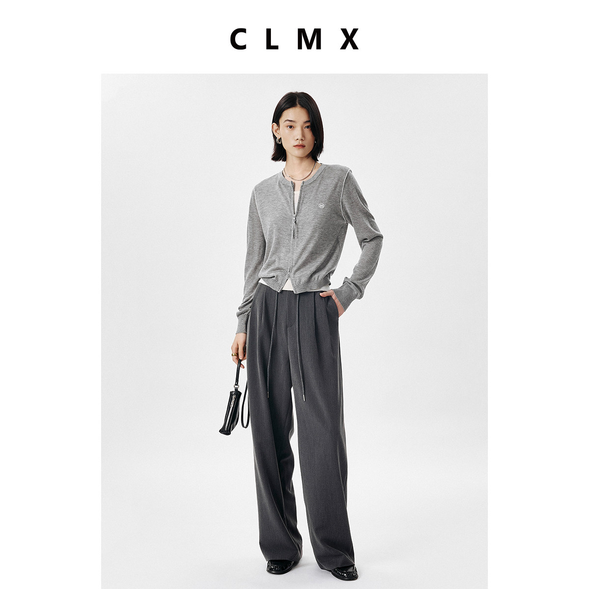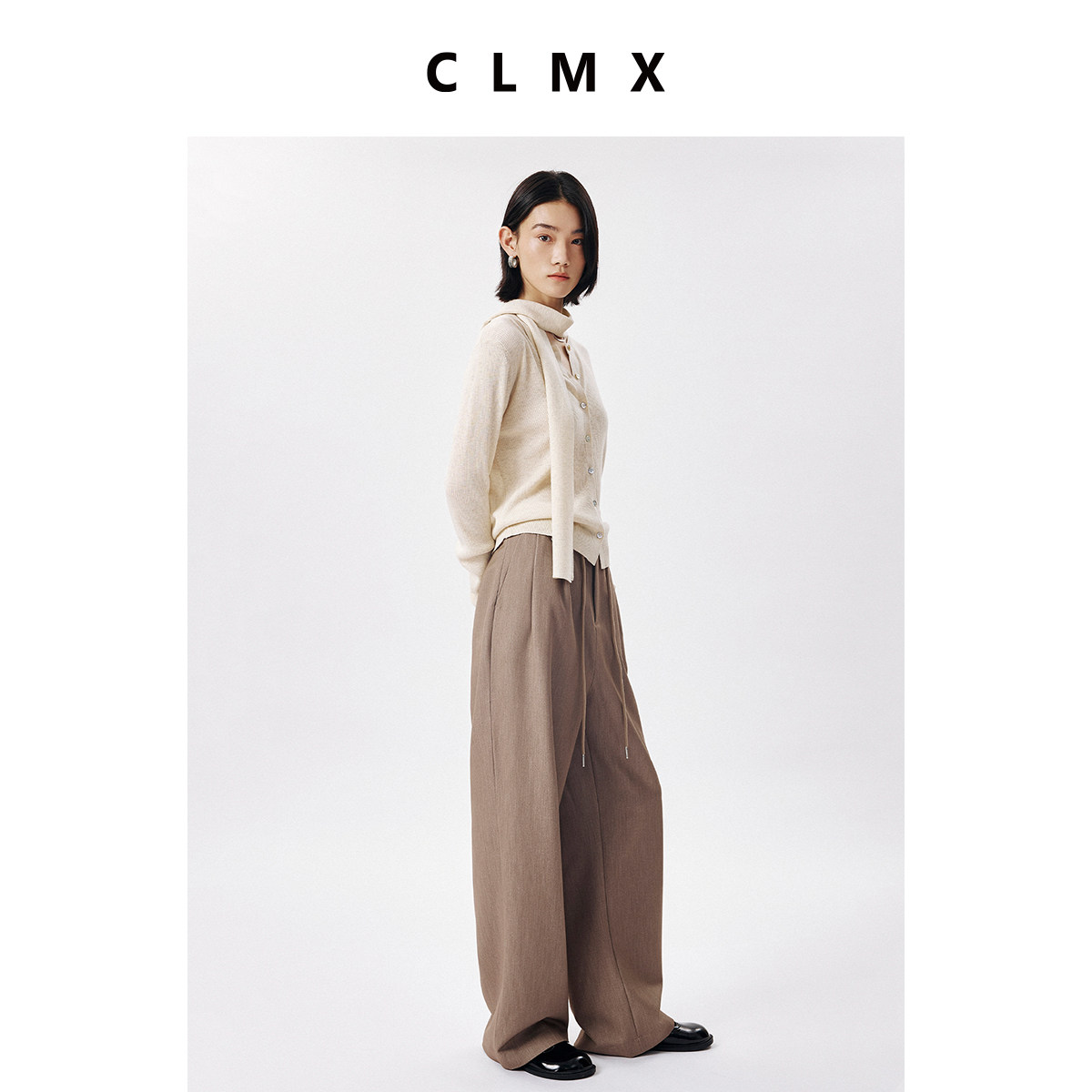 CLMX时装感双色纱斜纹TR西装裤面料 随性休闲经典系带阔腿直筒裤