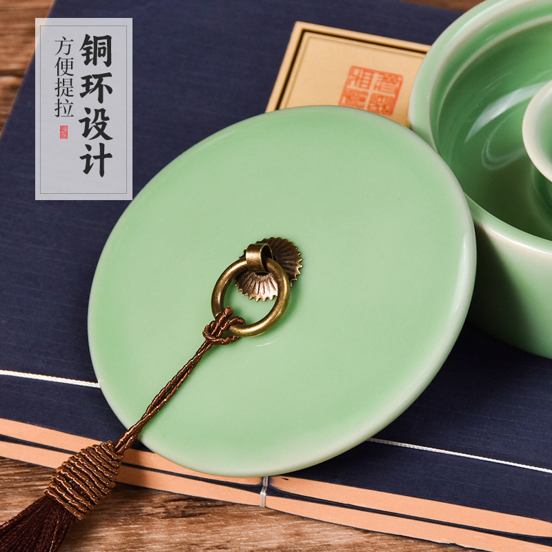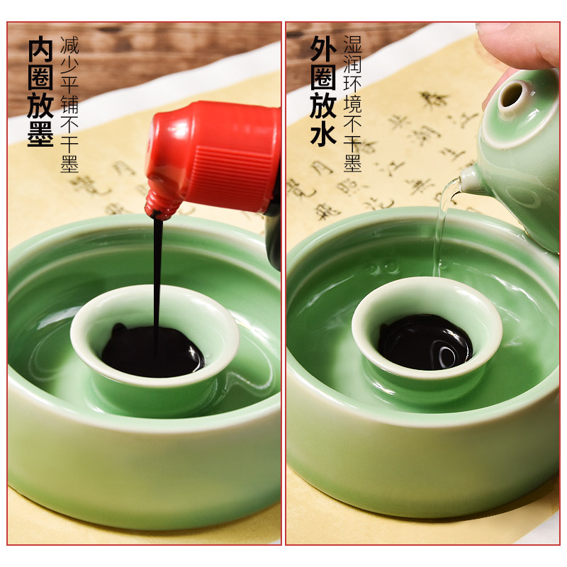 火锅砚台带盖双圈保湿防蒸发不干墨砚台文房四宝墨碟书法专用学生练毛笔字墨盒墨台墨盘磨墨多功能陶瓷火锅砚