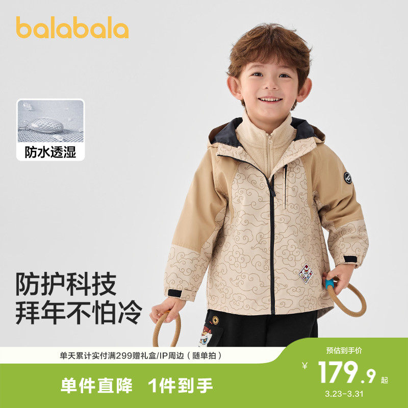 巴拉巴拉童装男童防风防水便服宝宝潮酷连帽外套秋冬装两件套上衣
