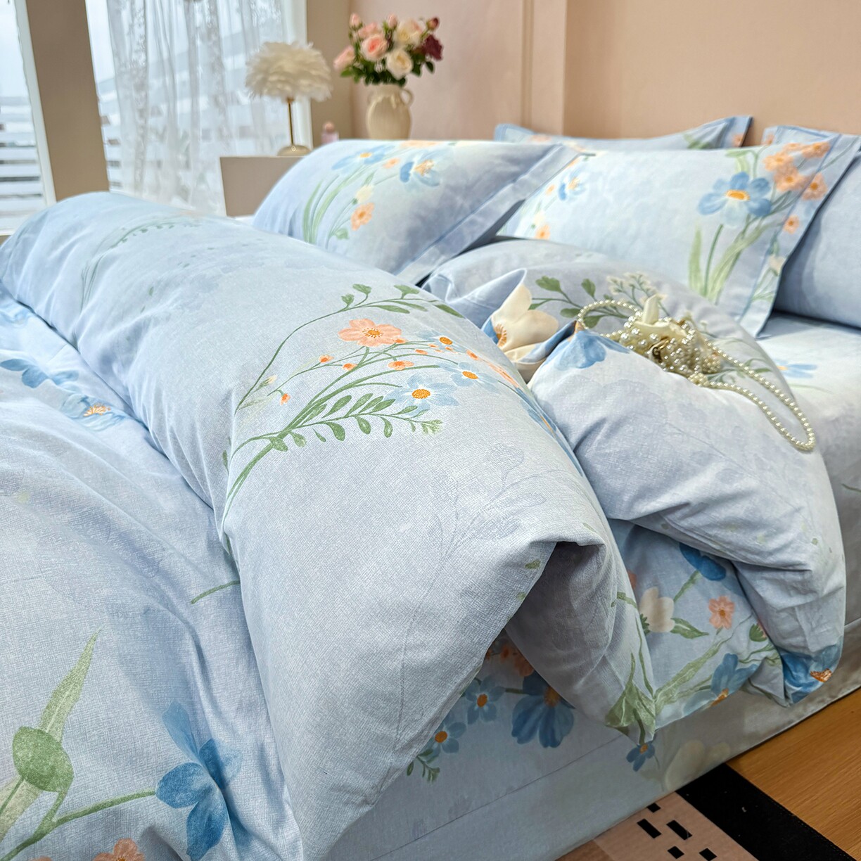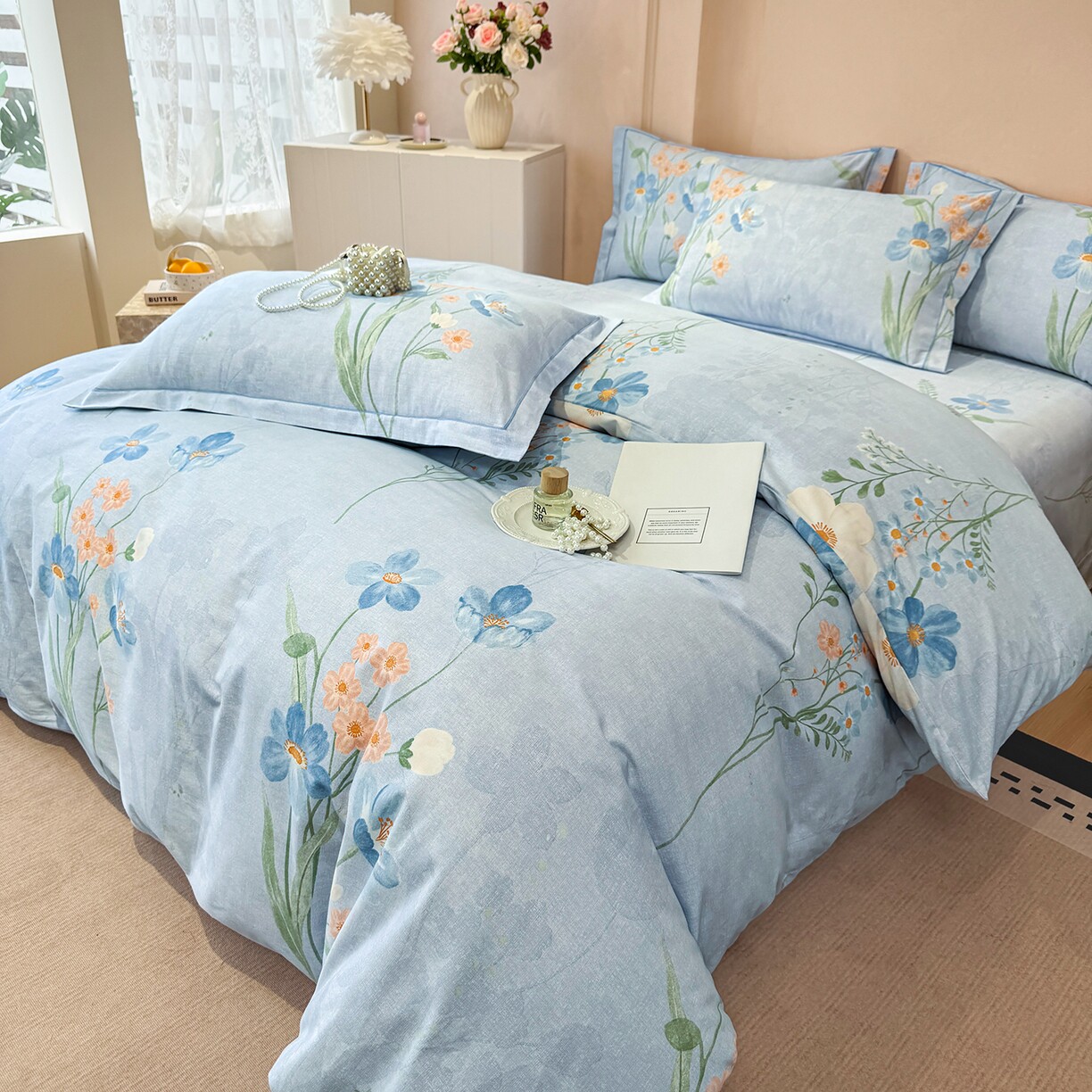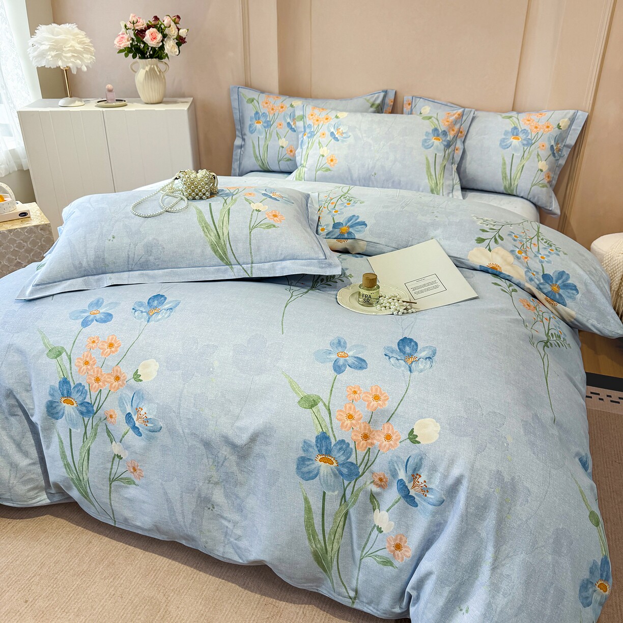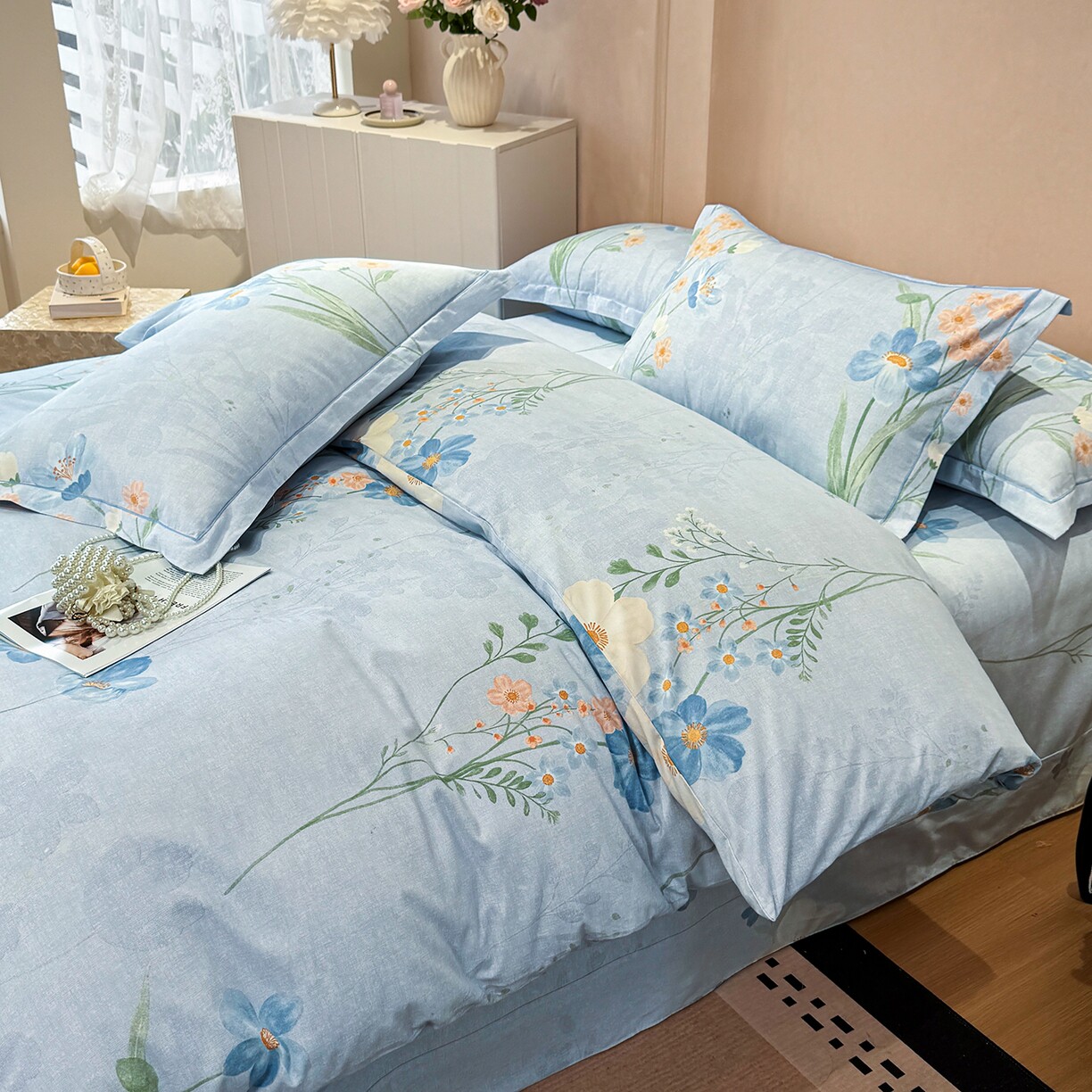 全棉磨毛四件套系列清新花朵印花四件套纯棉床品套件被套床单枕套