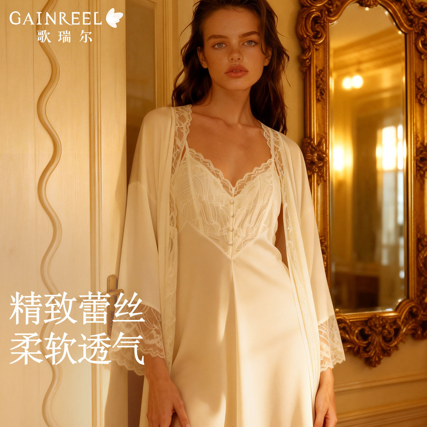 歌瑞尔性感吊带睡裙睡袍裸感舒适睡衣女法式蕾丝薄款家居服套装