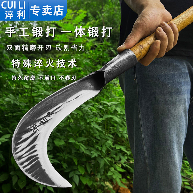 手工锻打砍柴刀户外砍割两用镰刀钓鱼砍树砍柴割草柴刀老式小连刀