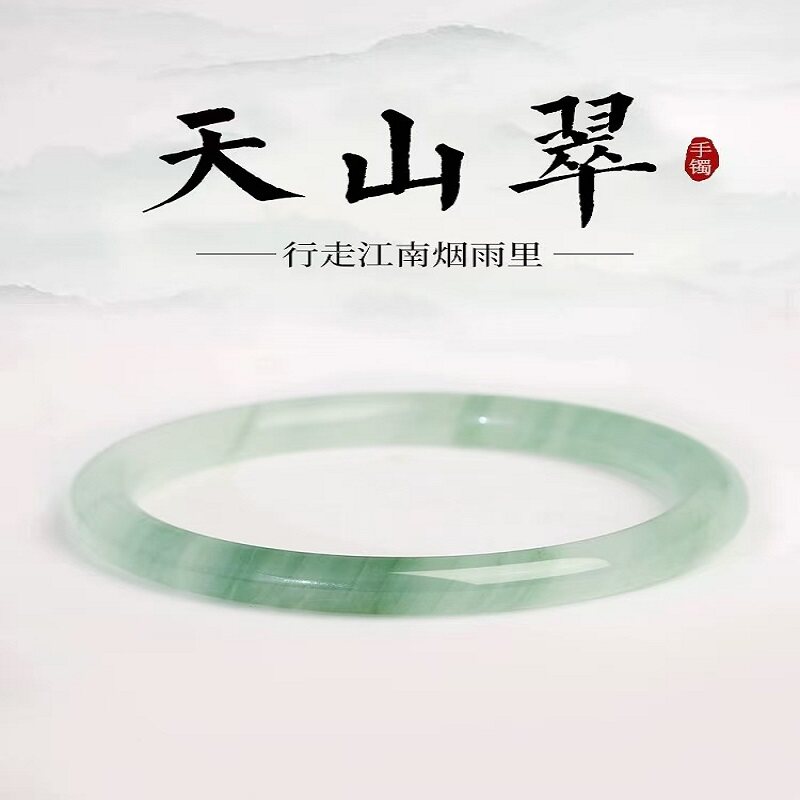 爆款仿新疆玉镯手串手链圆条飘花翠冰透款手镯紫罗兰平替镯天山翠