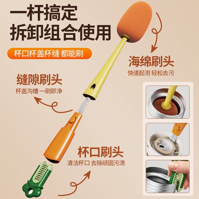 杯刷三合一多功能洗杯子神器海绵洗奶瓶刷长柄清洗刷子无死角杯盖
