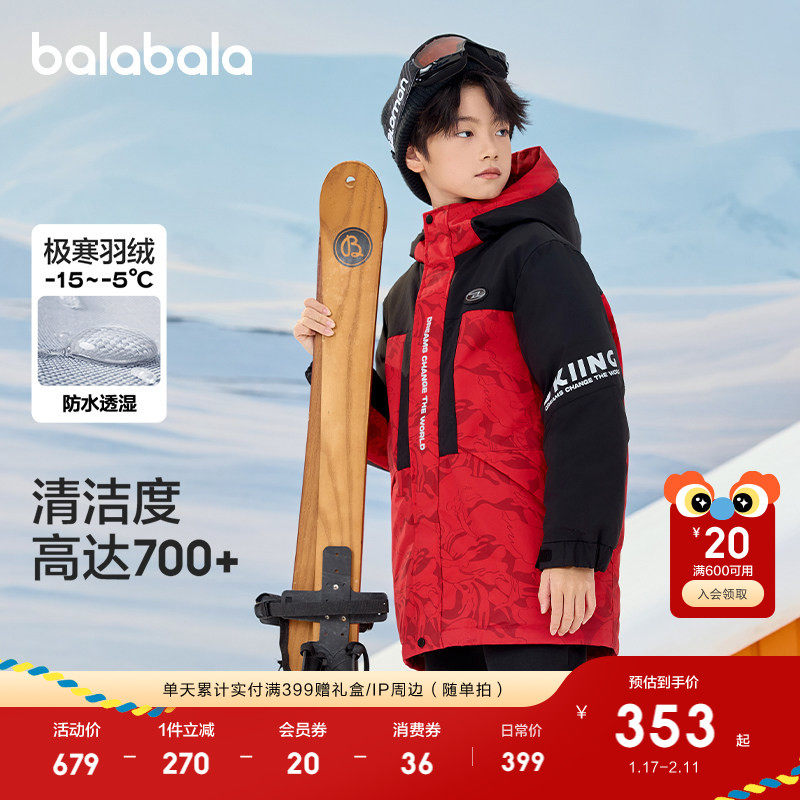 巴拉巴拉童装儿童羽绒服男童冬装中长款防护上衣流行舒适户外潮款