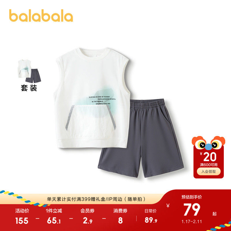 巴拉巴拉儿童套装夏装男童中大童无袖两件套童装运动时尚宽松舒适
