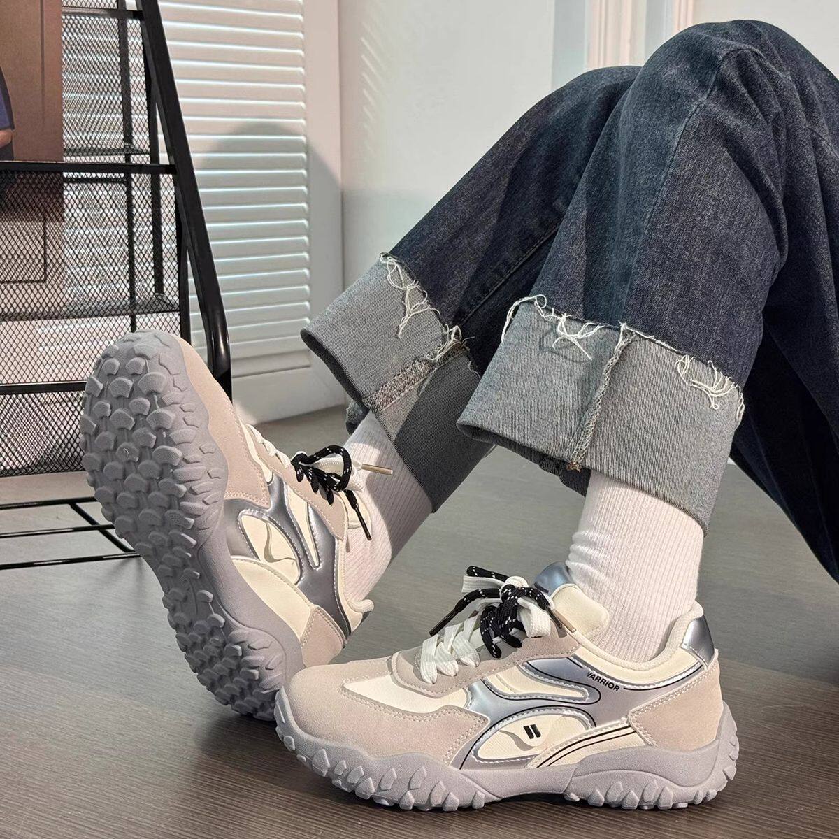 米白色原创小众厚底面包鞋女百搭运动休闲板鞋学生小白鞋2025新款