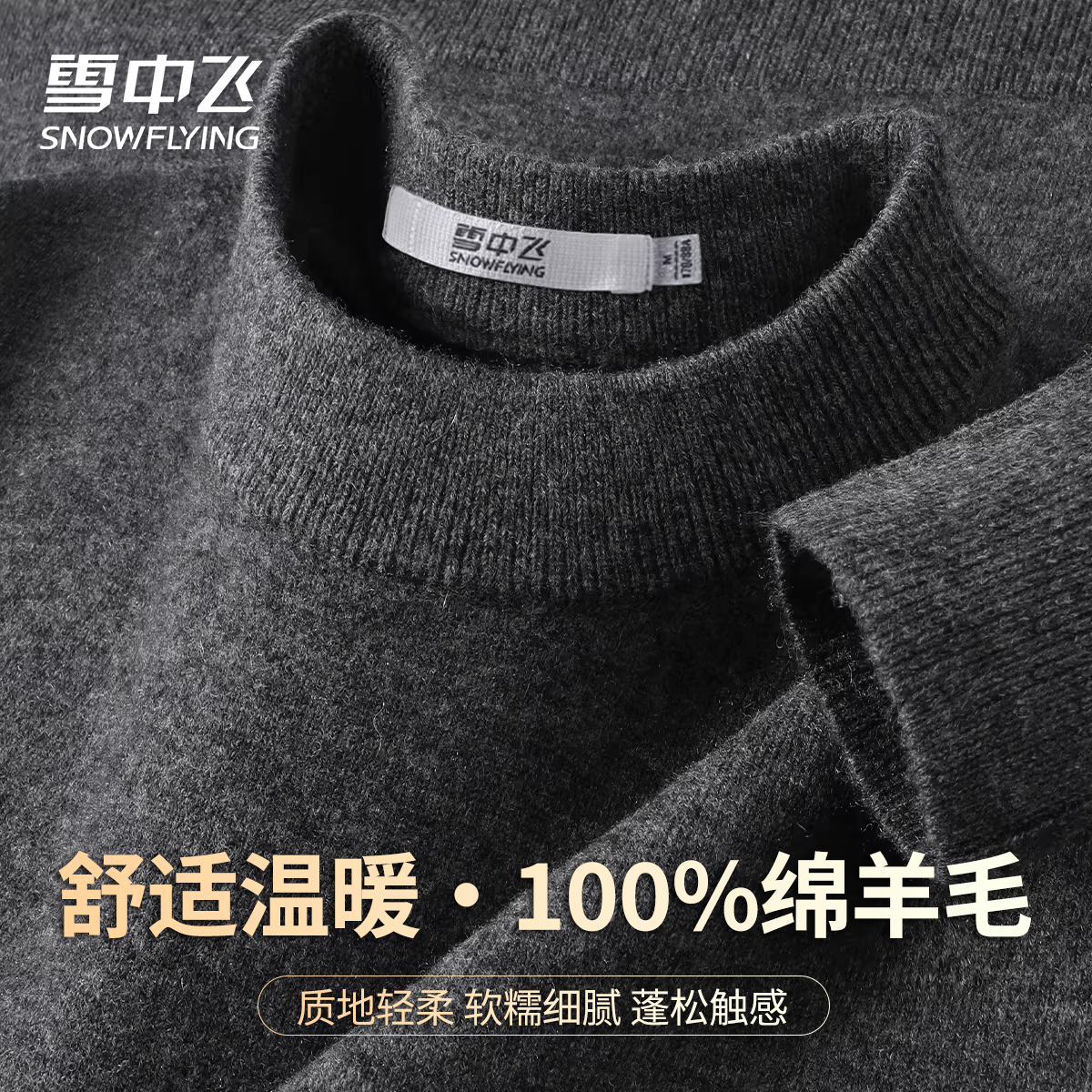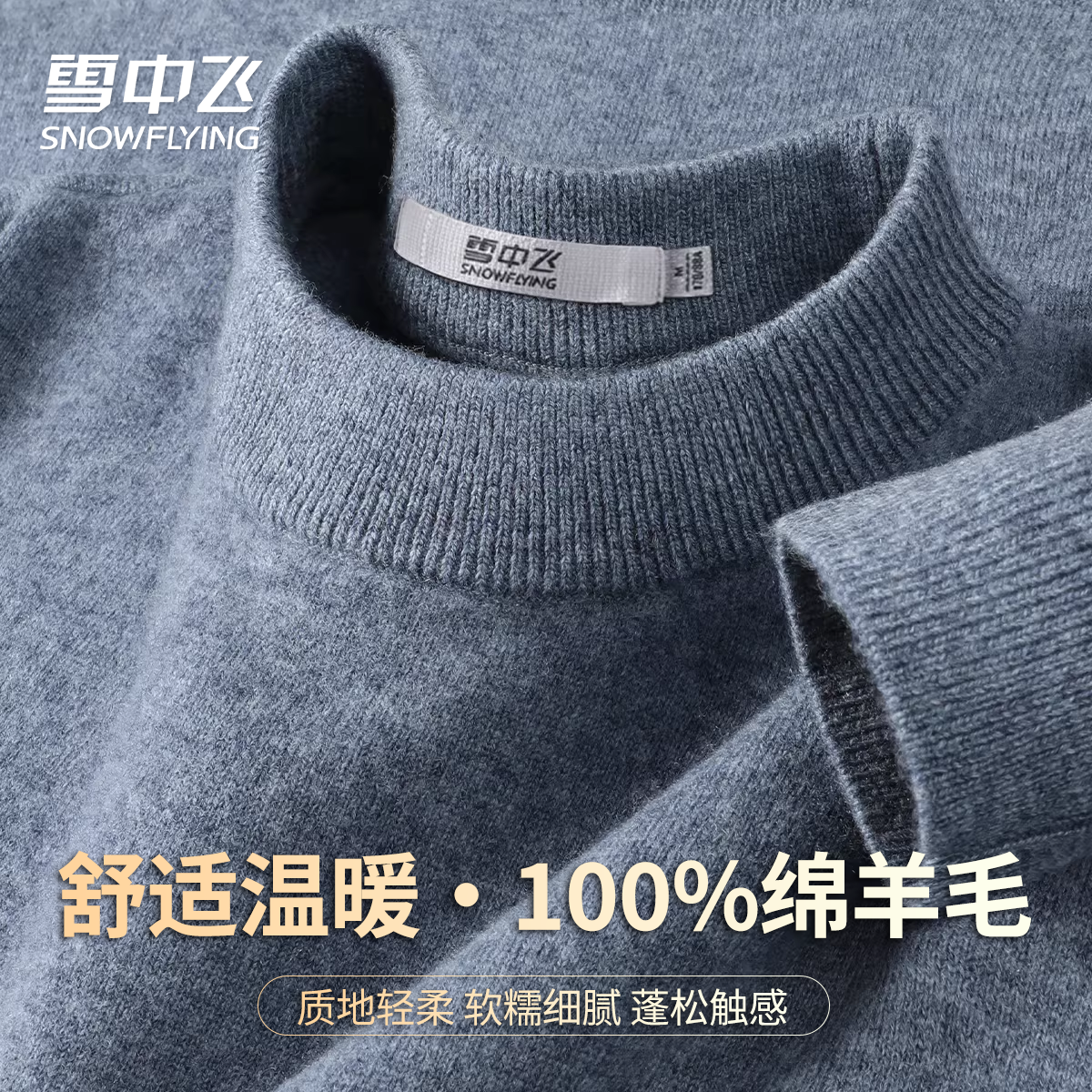 雪中飞【通勤百搭】100%绵羊毛男春装款圆领纯色温暖舒适羊毛衫W