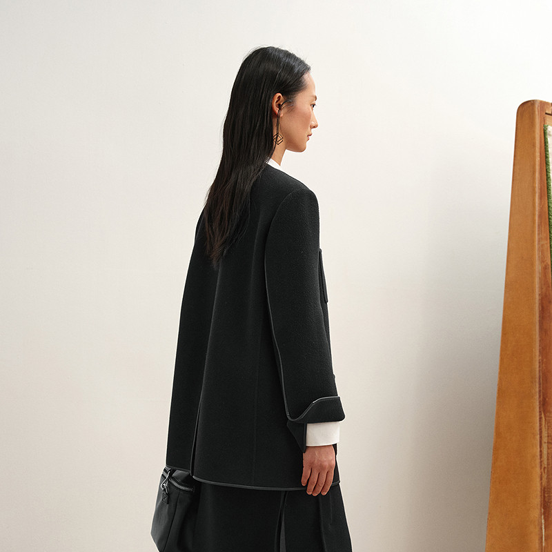 【商场同款】LESS2025年冬新款中长款无领长袖呢大衣2P0816520