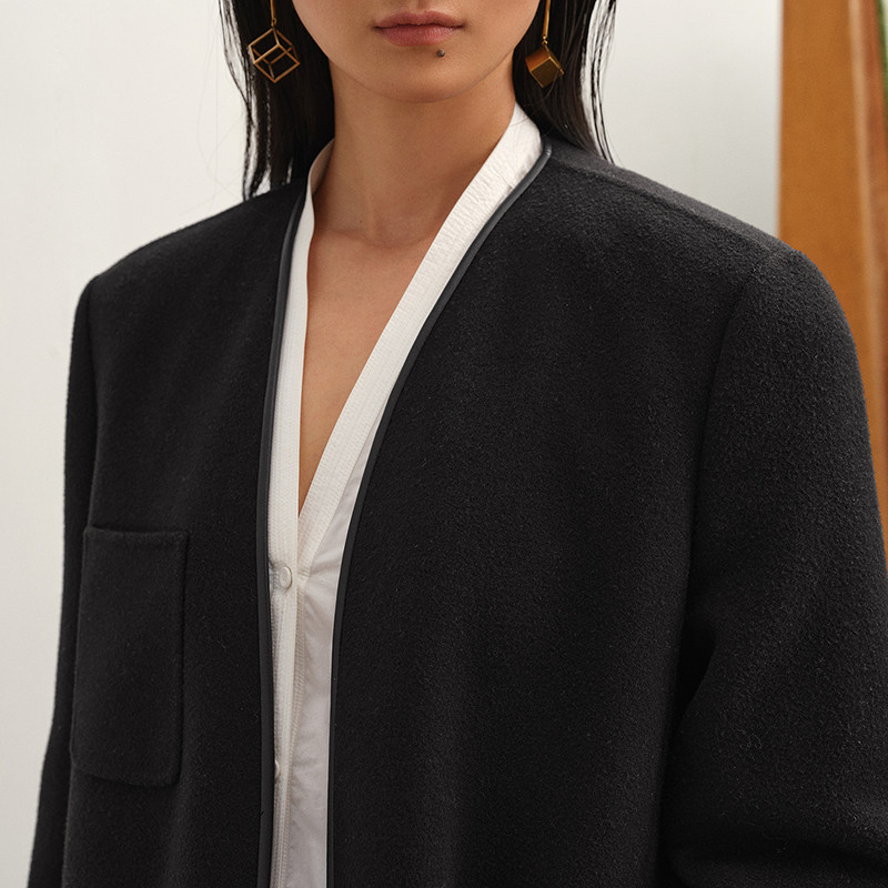 新中式双面羊毛大衣女短款2025新款国风羊毛双面呢外套时尚百搭