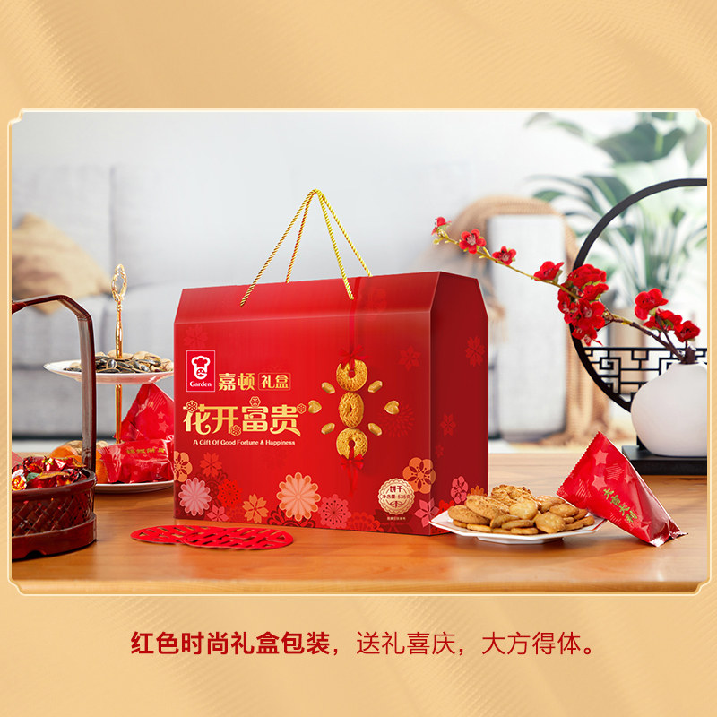 【年货礼盒】嘉顿小圆饼干礼盒花开富贵红盒曲奇喜饼年货礼盒