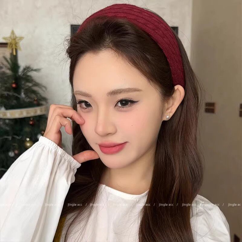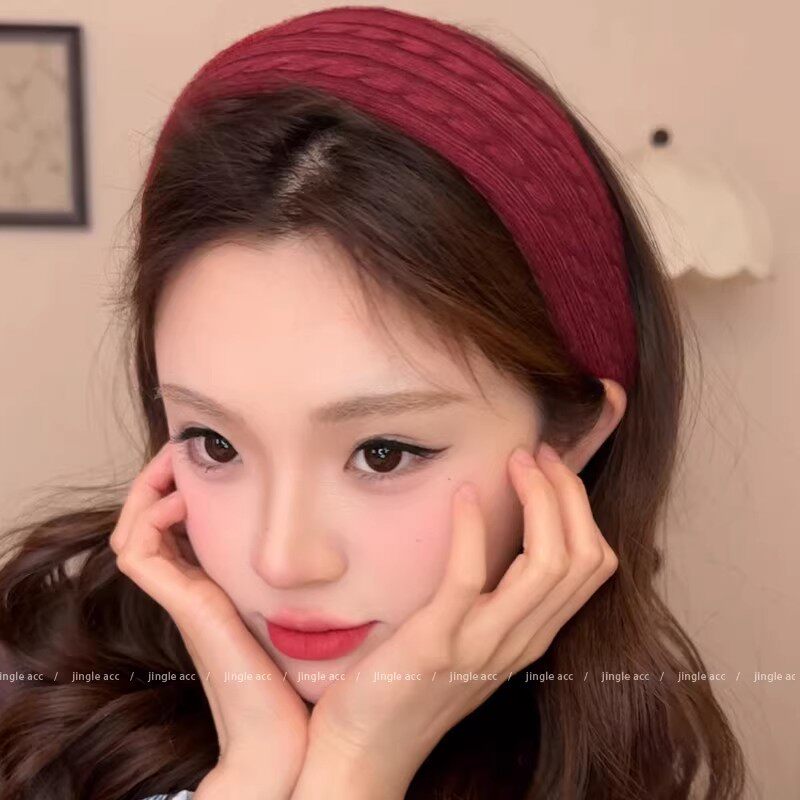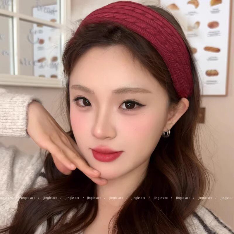 新年红色针织毛线宽边发箍女秋冬日常外戴高颅顶压发头箍洗脸发卡