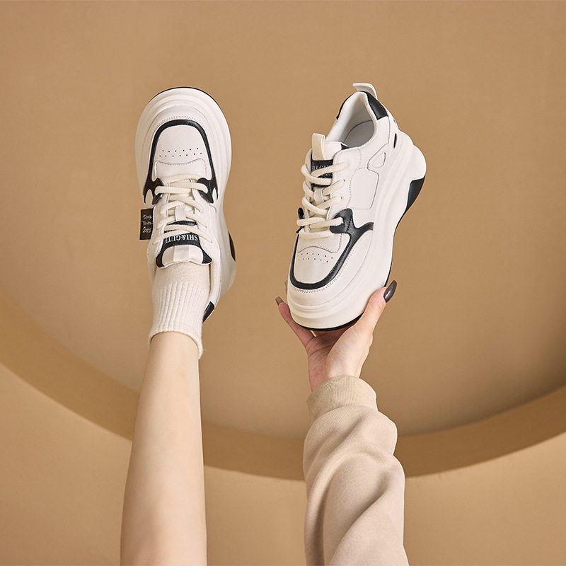 3233小码真皮休闲鞋女厚底韩版小白鞋女系带拼色老爹鞋内增高女鞋