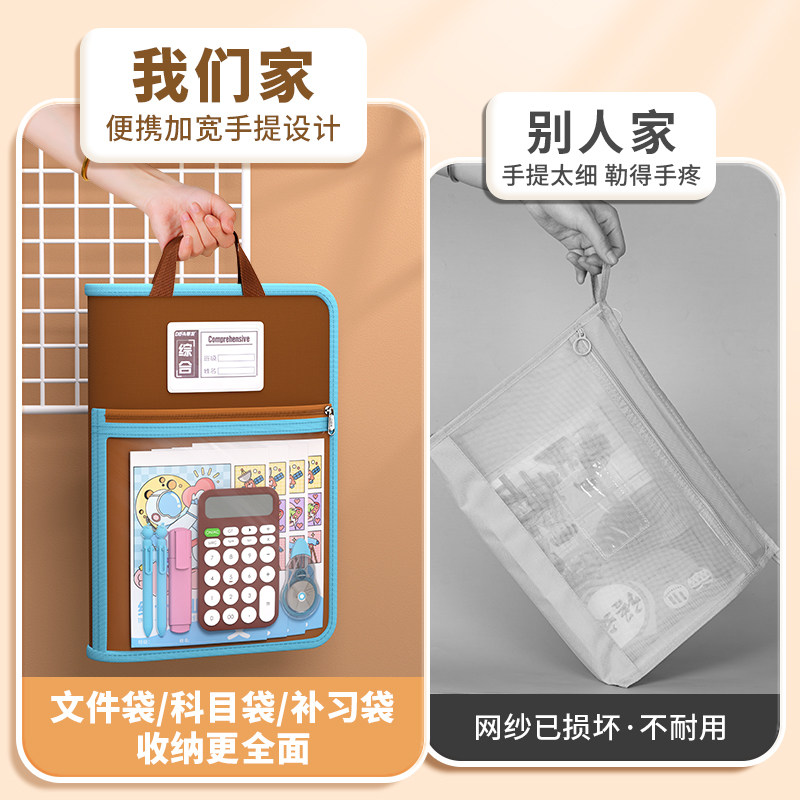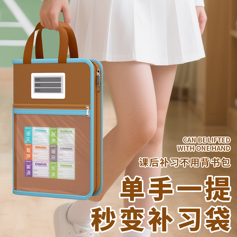 三年二班试卷收纳袋手提文件袋拉链式透明补习袋初中小学生科目分类资料书本收纳补课包拎书袋入学必备用品K