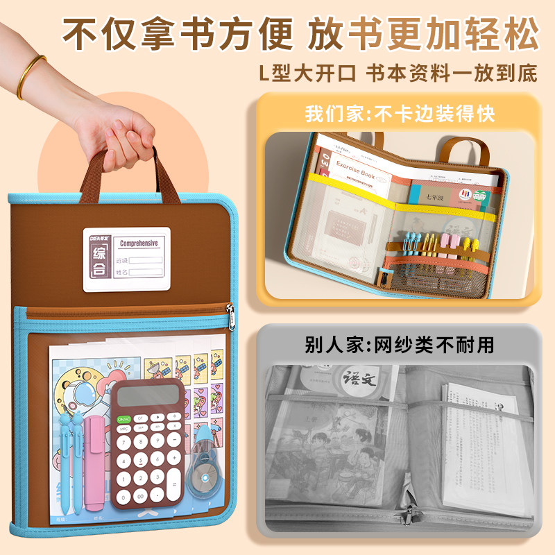 晨光文具学科科目分类袋小学生文件袋拉链式试卷收纳袋透明网纱双层大容量书袋作业资料a4考试专用袋票据产检