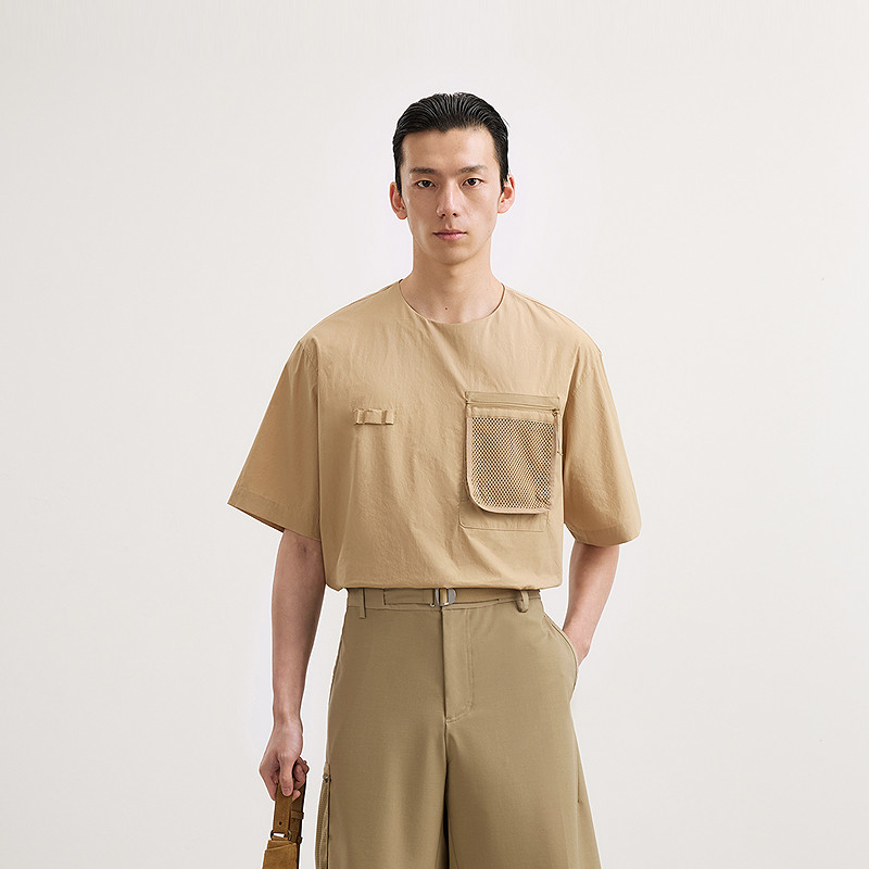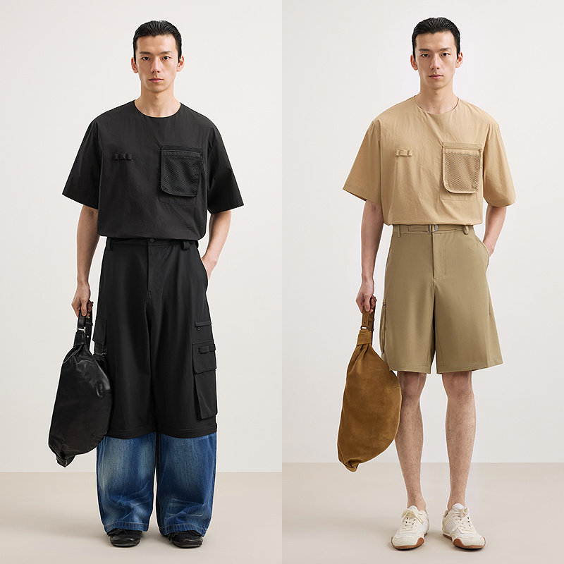 速写男装春夏新款男士短袖T恤户外风宽松口袋设计上衣休闲运动风
