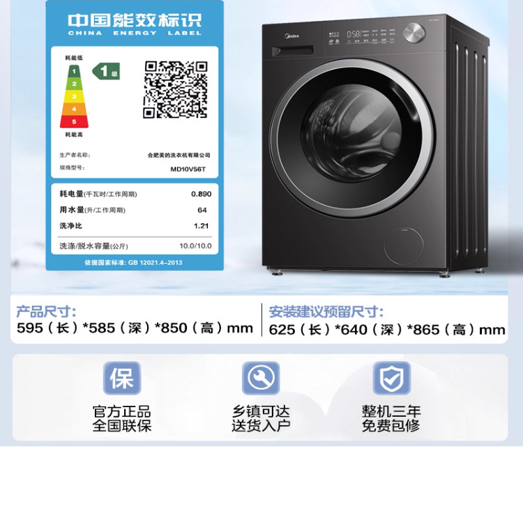 美的10Kg大容量纯平全嵌全自动精华洗一级能效除菌除螨变频洗衣机