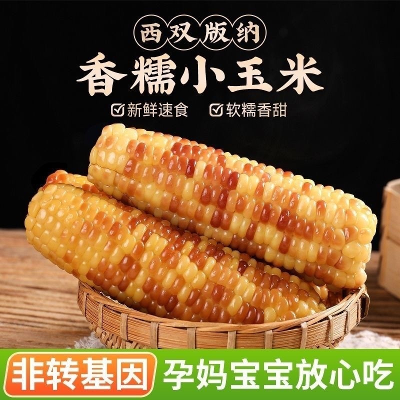 云南西双版纳香糯小玉米新鲜真空加热即食粘糯甜代餐玉米棒速食