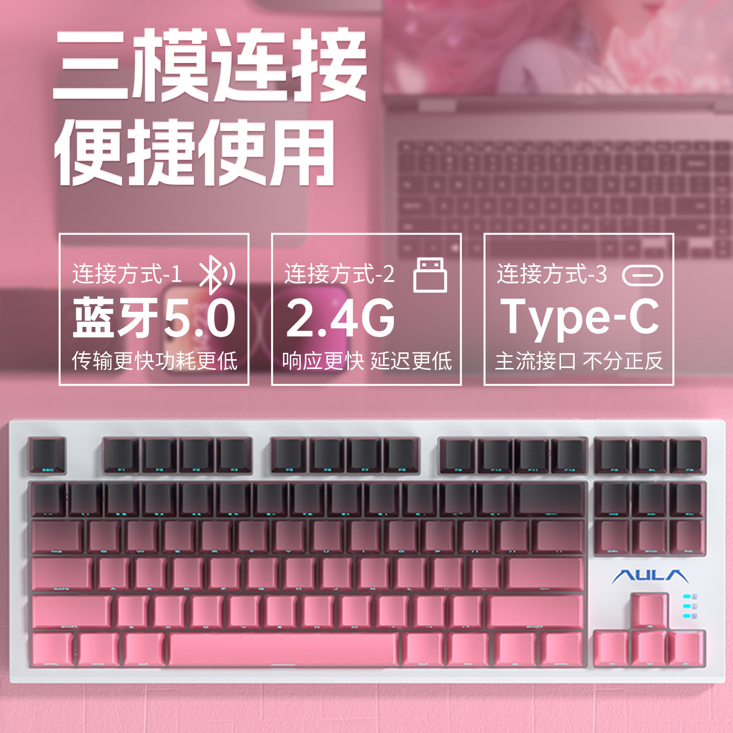 狼蛛F3387无线三模全键热插拔机械键盘87键键鼠套装电脑游戏办公