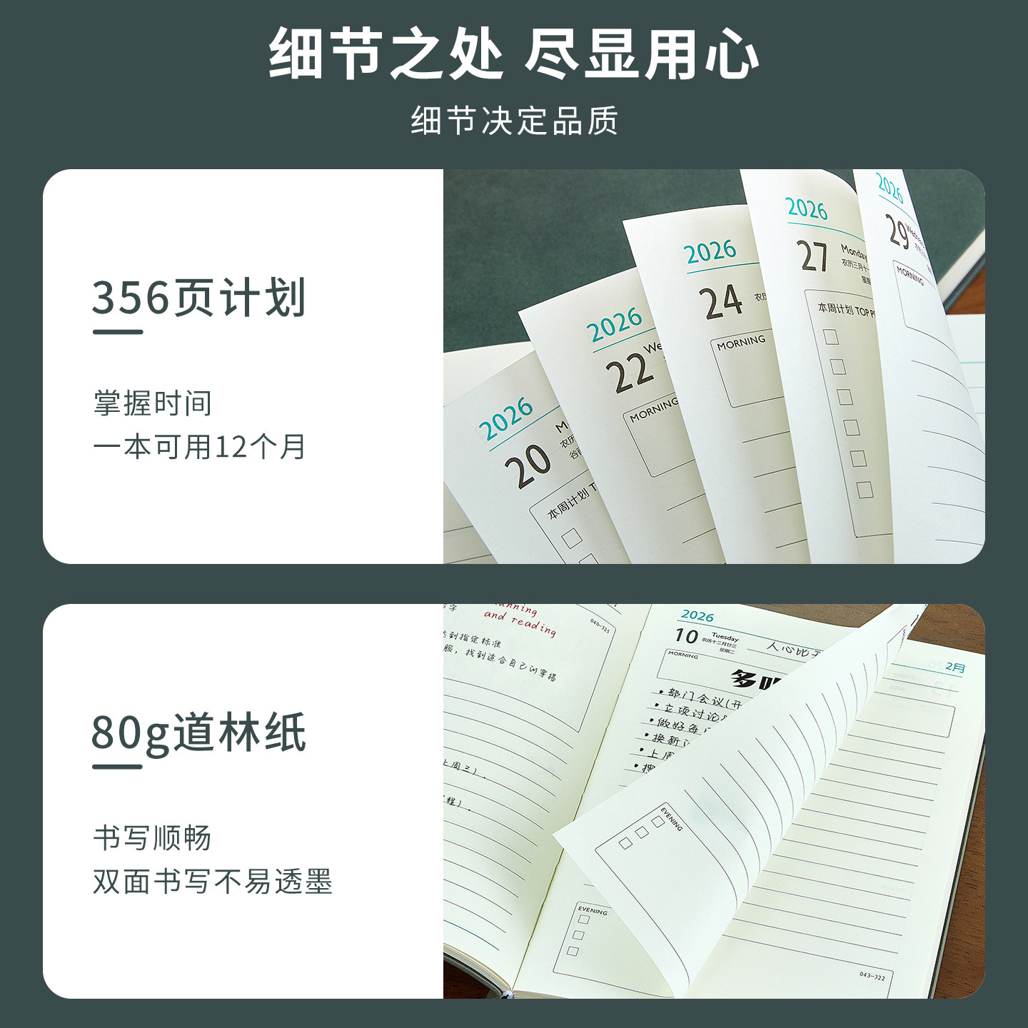 2026年日程本新款加厚一日一页记事本工作效率手册软皮笔记本子时间管理每日计划表办公日历商务日记本可定制