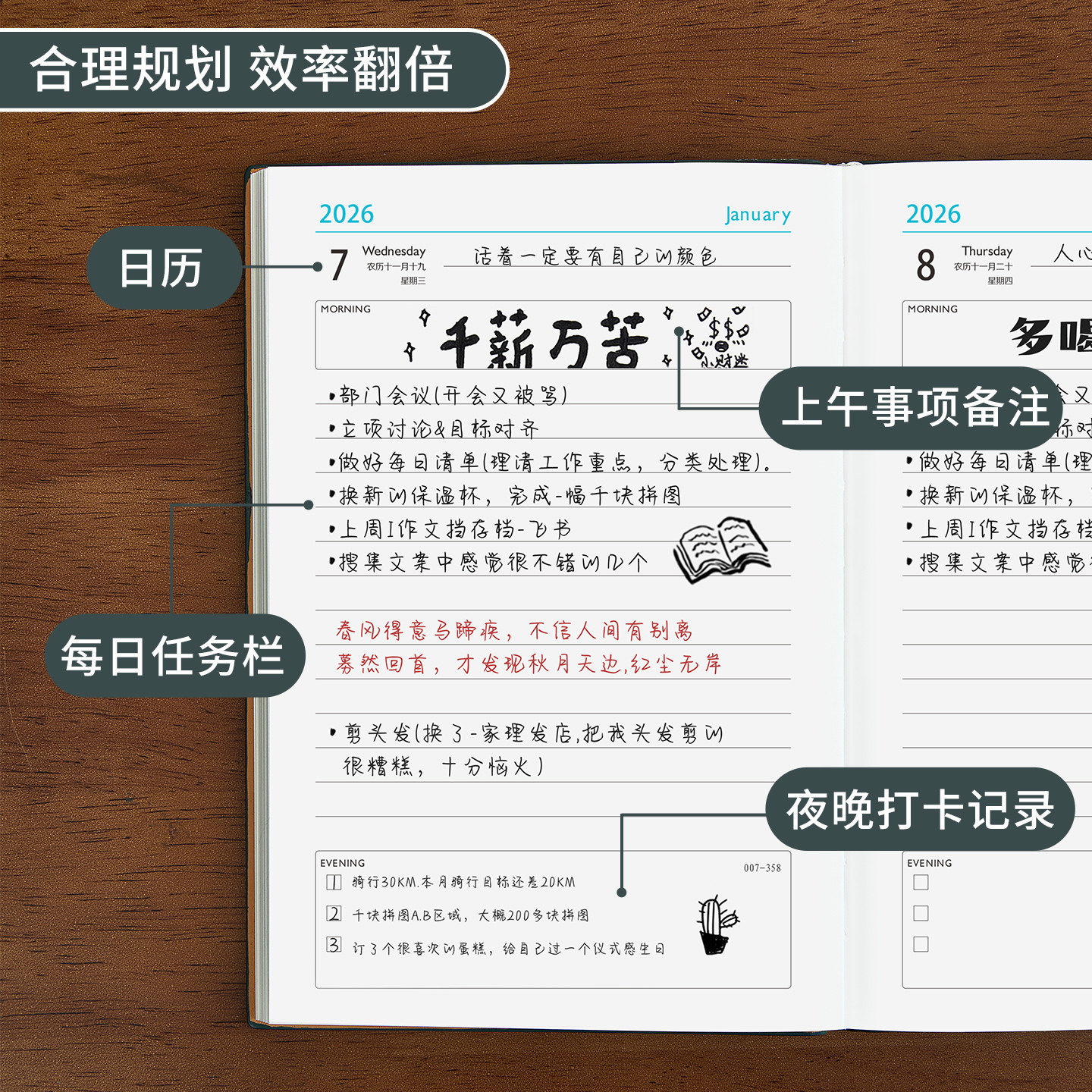 2026年日程本新款计划表365天每日时间管理效率手册大学生日历自律打卡本高颜值记事本文艺精致手账笔记本子