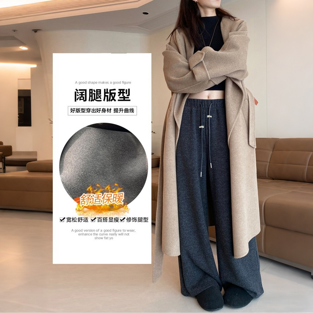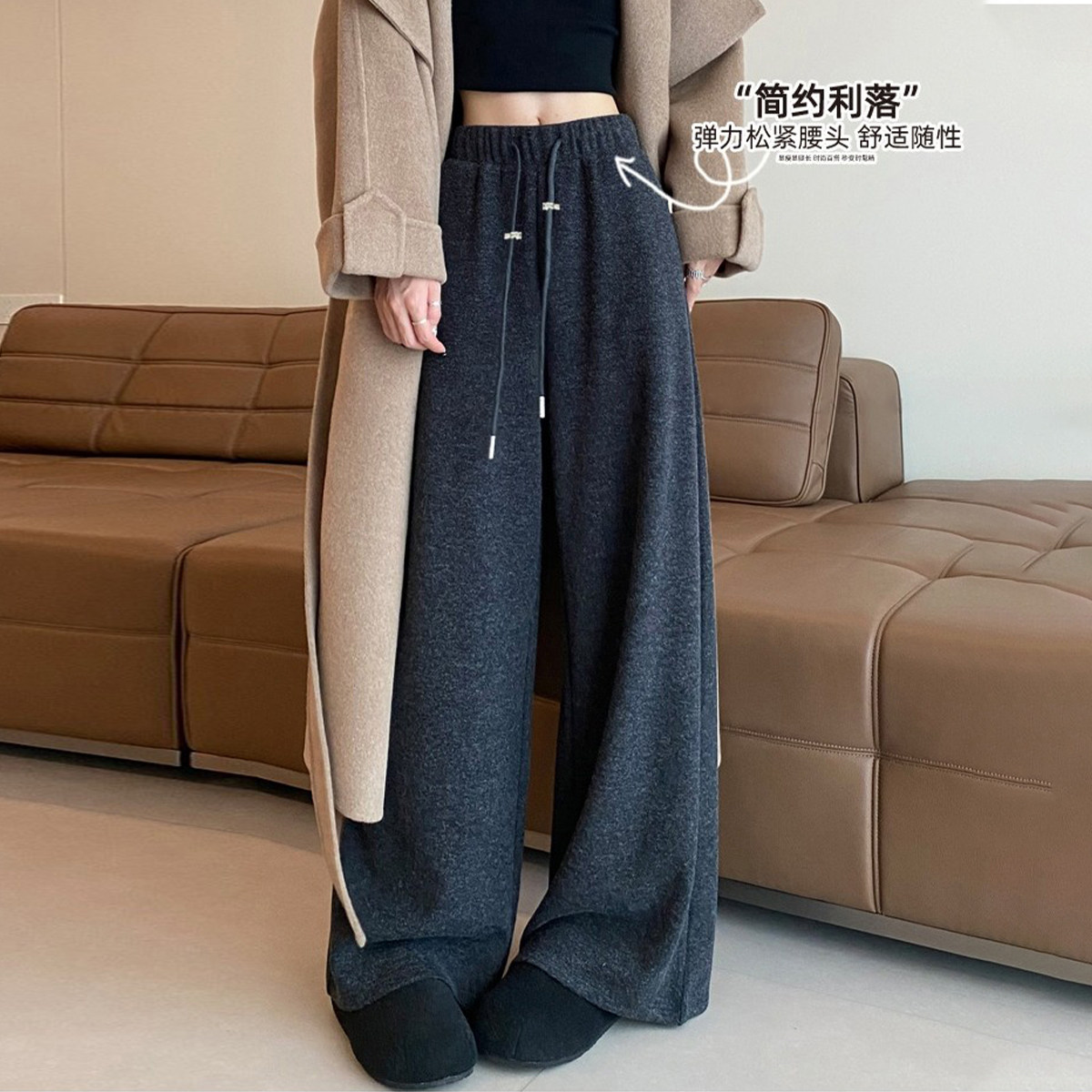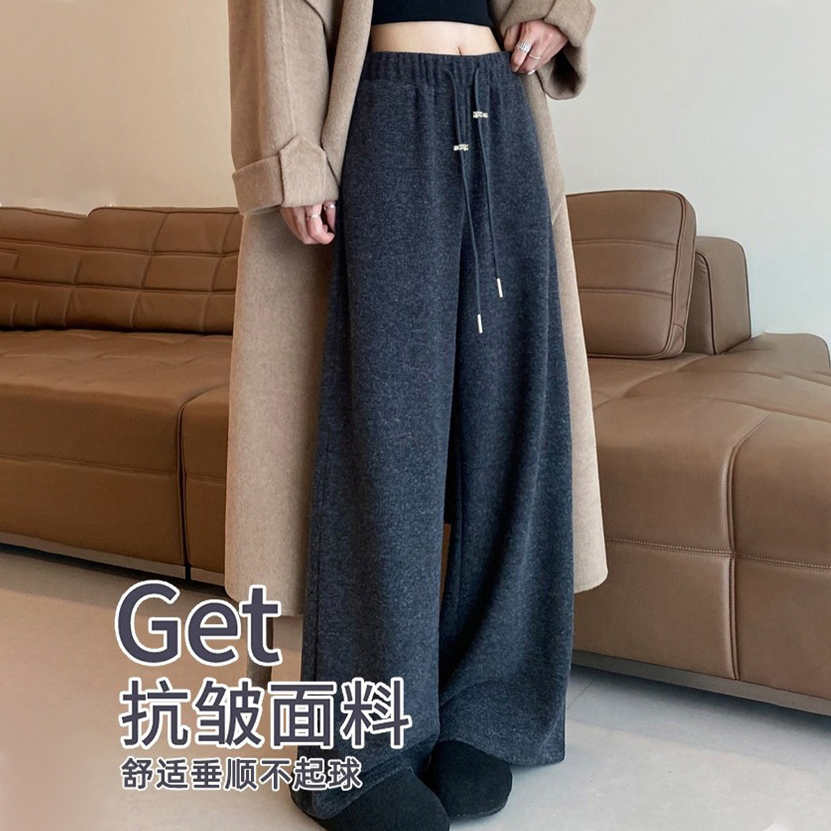【新品】醋酸羊毛孕妇裤秋冬2025新款托腹不勒肚子加绒孕妇阔腿裤