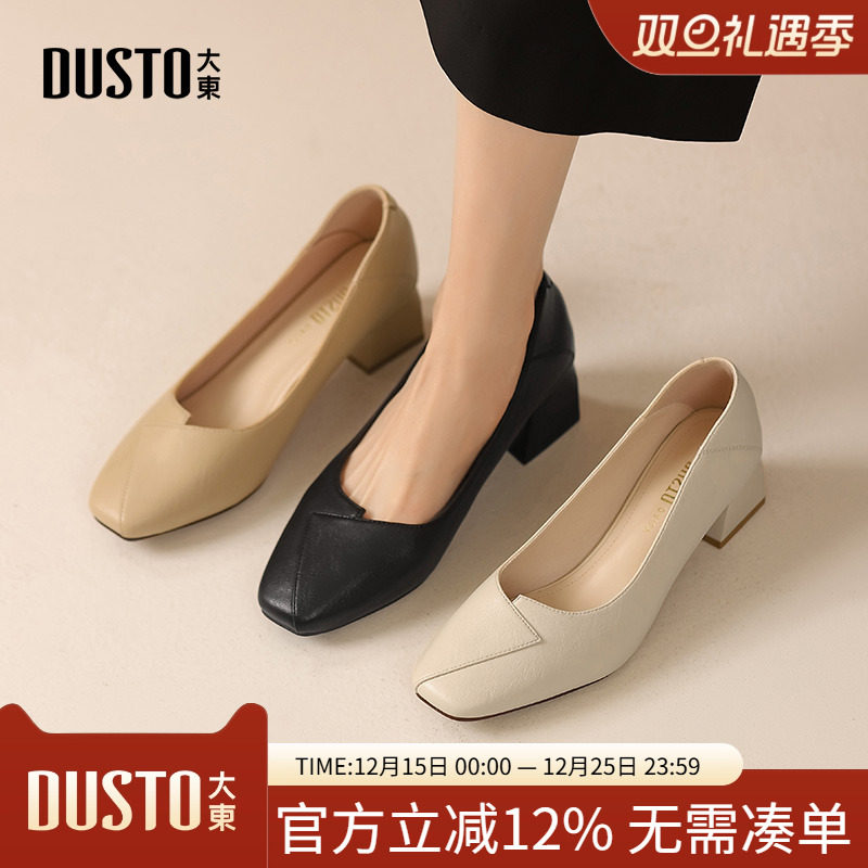 大东通勤鞋女鞋2025秋季新款简约两穿中跟粗跟配裙子爆款单鞋0009
