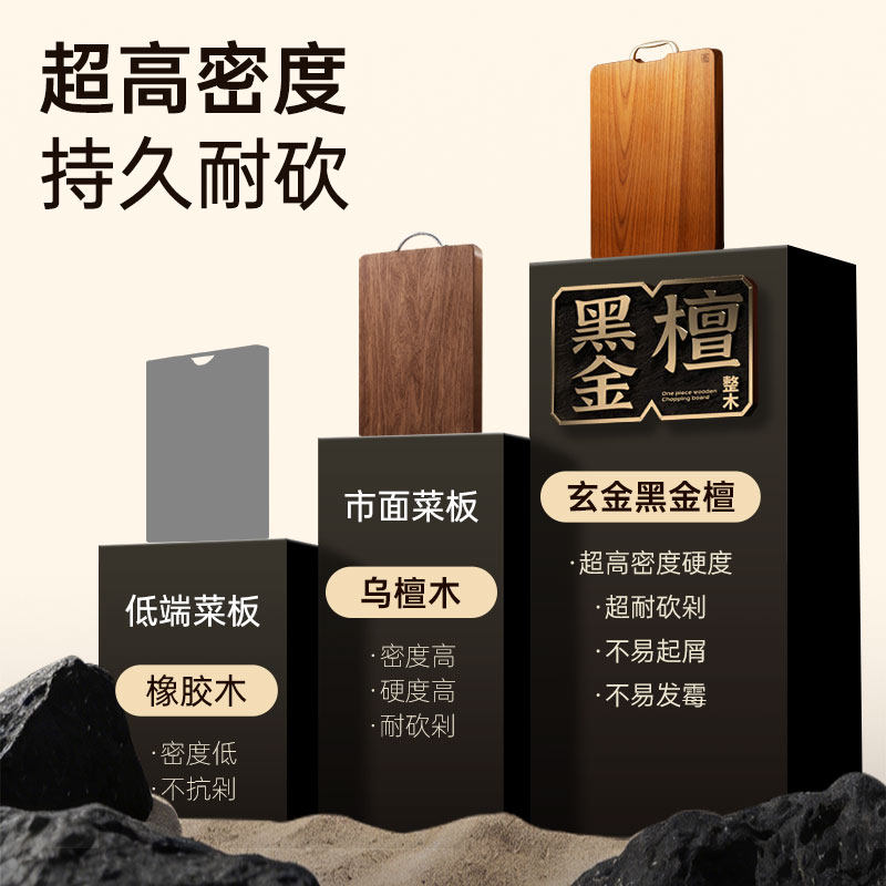 木雅轩玄金黑金檀整木砧板防霉占板菜板实木大号家用切菜板木质