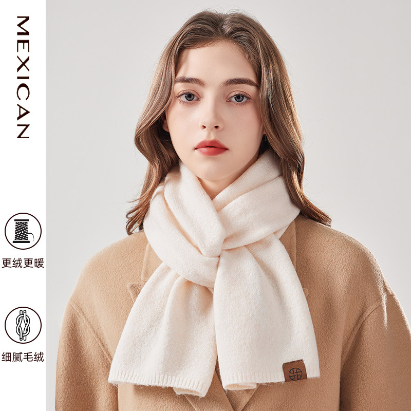 稻草人纯色小围巾女2025新款秋冬百搭保暖加厚护颈短款围脖送女友