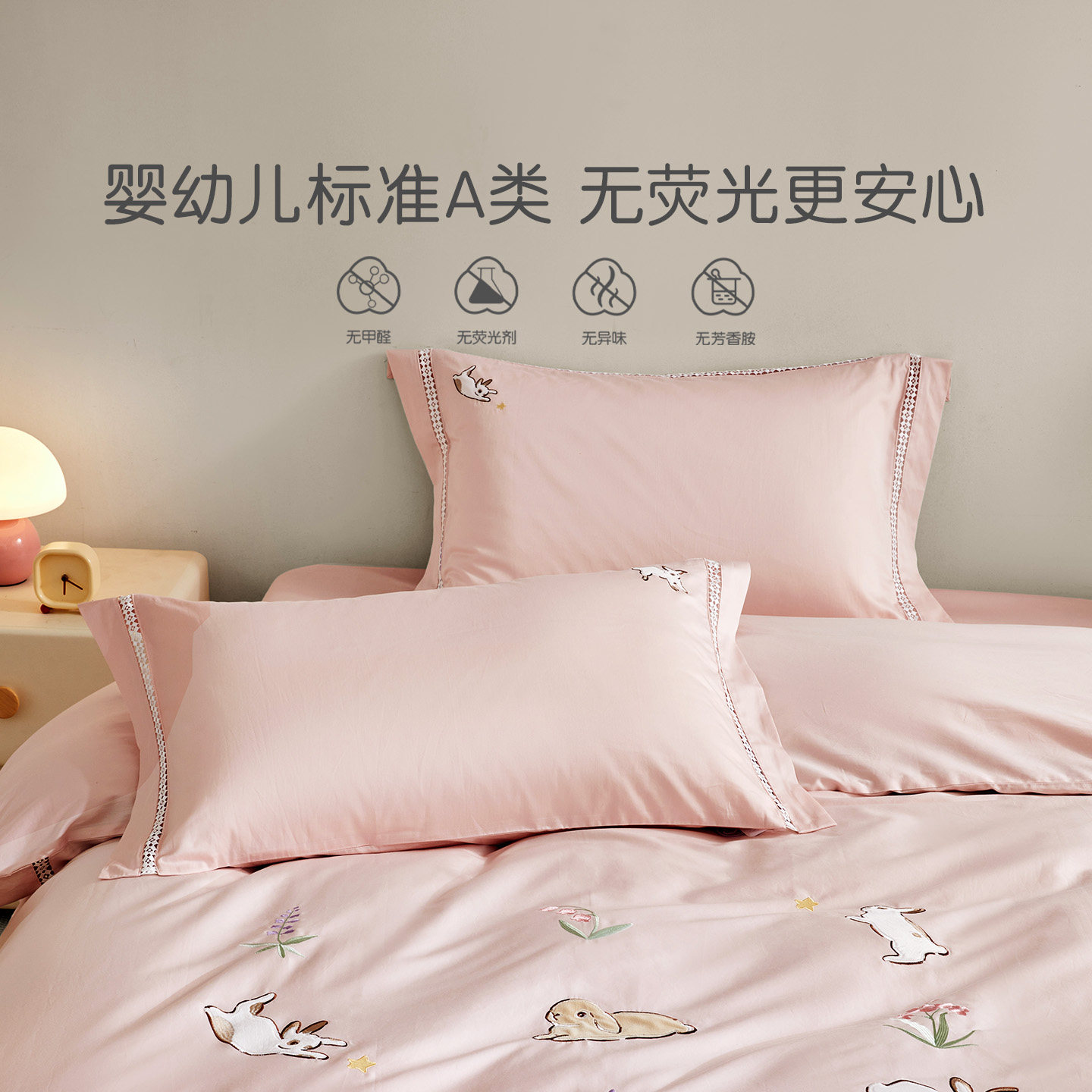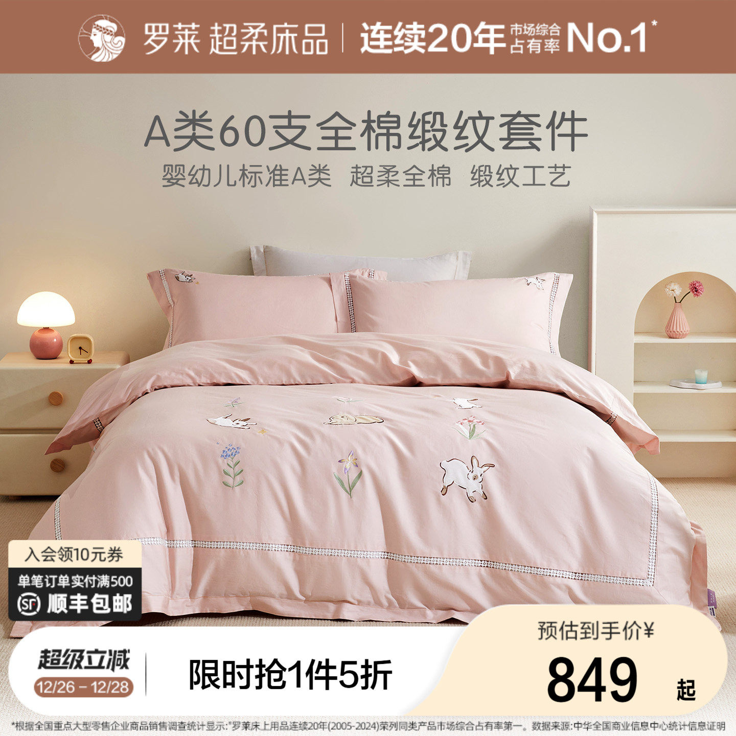 罗莱家纺儿童2025新款三件套60支全棉纯棉床单被套被罩女孩四件套