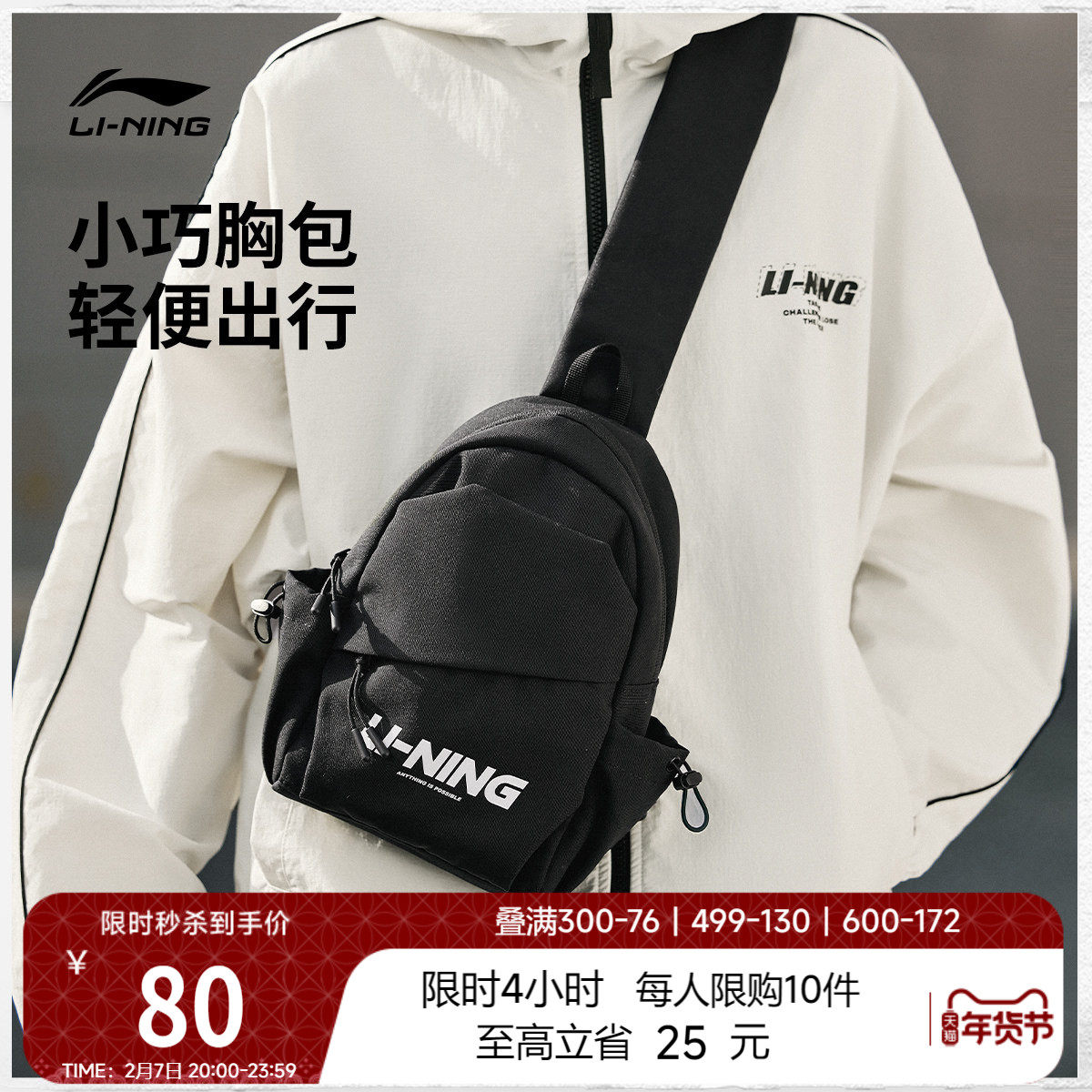 李宁单肩包男士官方小型轻便多功能胸包学生潮流通勤运动斜挎包女