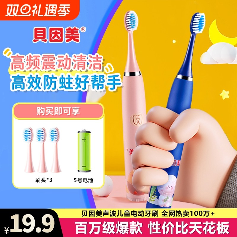 贝因美儿童电动牙刷充电池3到6一12岁以上全自动软毛宝宝替换刷头