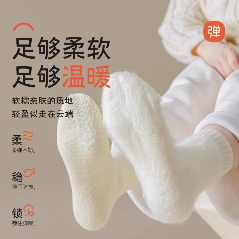 羊绒袜子女秋冬款中筒袜加绒加厚羊毛月子袜睡眠保暖冬季长袜毛绒