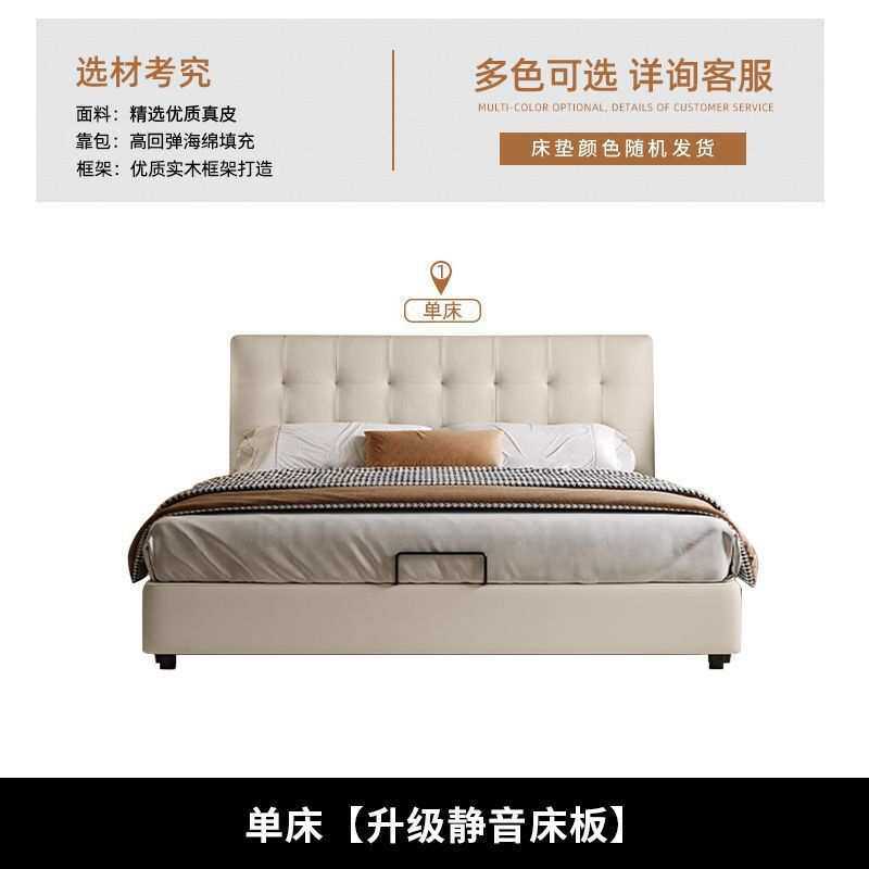 真皮床意式轻奢主卧大床家用小户型实木床高端皮艺床软包床双人床