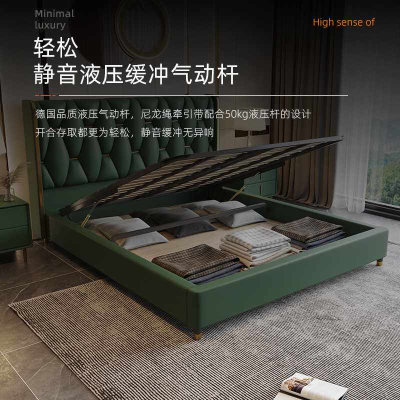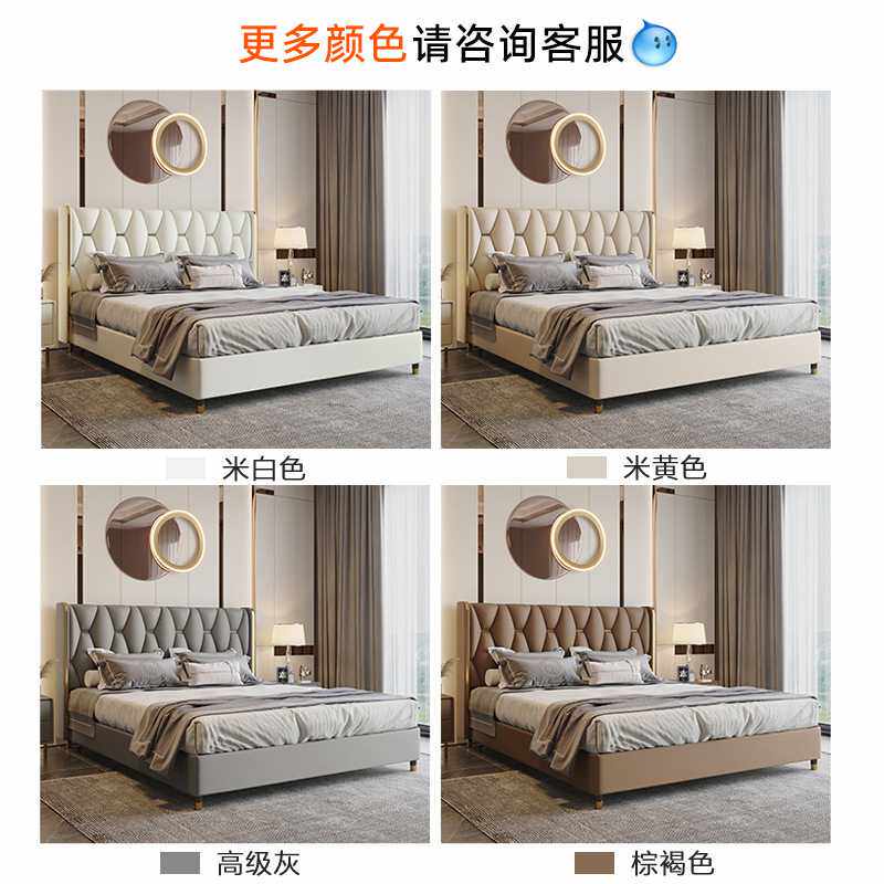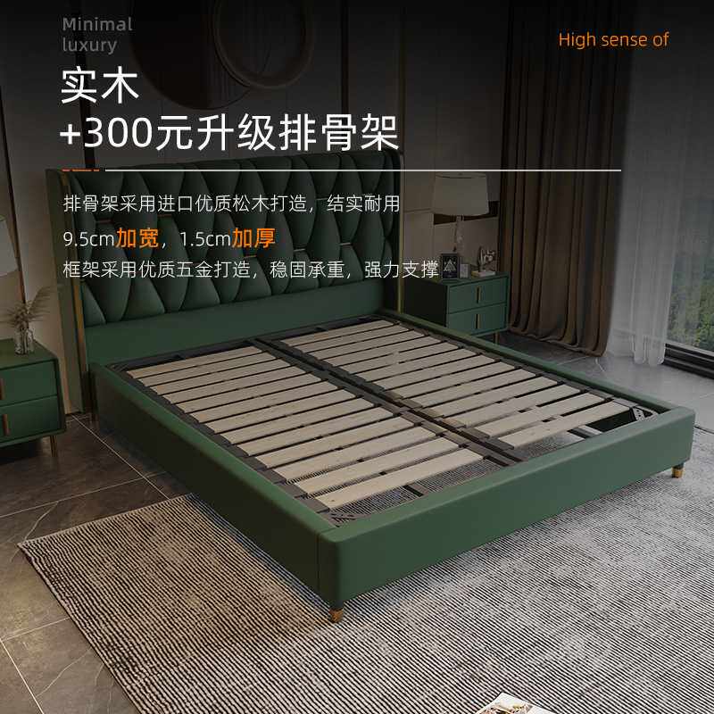 轻奢床现代简约主卧1.8米双人婚床软包皮艺床意式极简实木真皮床