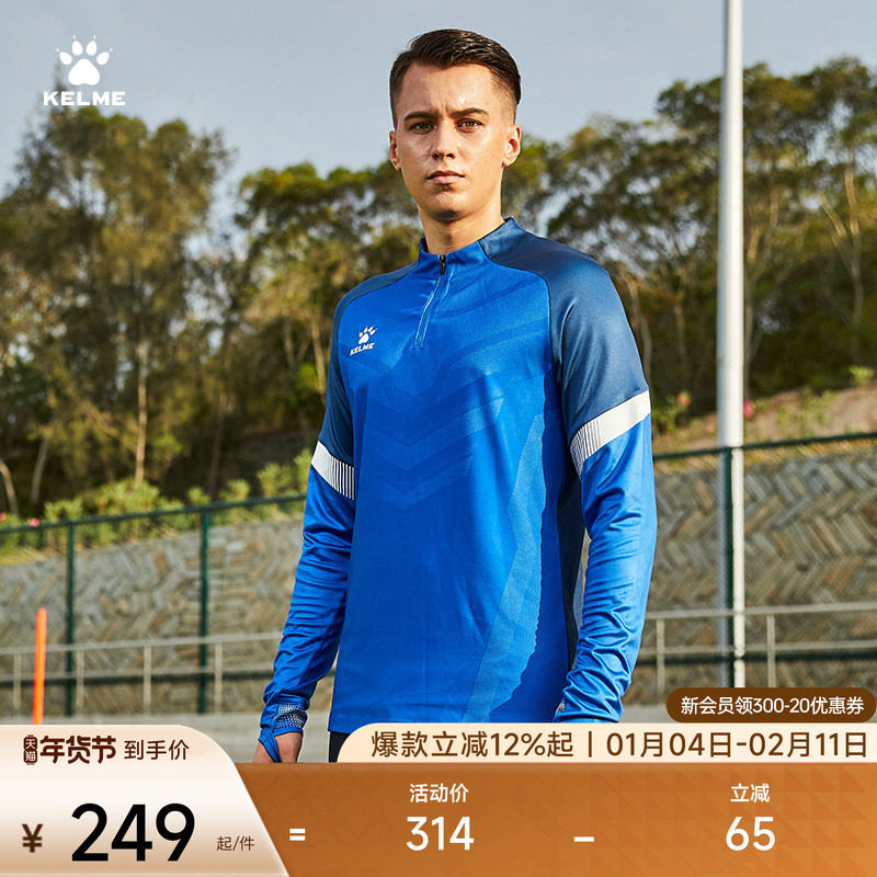 KELME卡尔美足球训练服长袖定制针织半拉链上衣运动服拇指扣卫衣