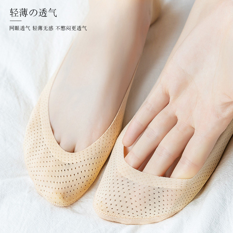 春夏季雀屏蕾丝船袜女袜脚底硅胶梅花防滑防脱均码薄款浅口隐形袜