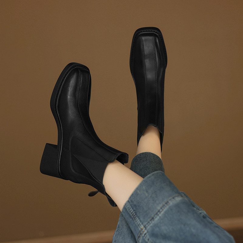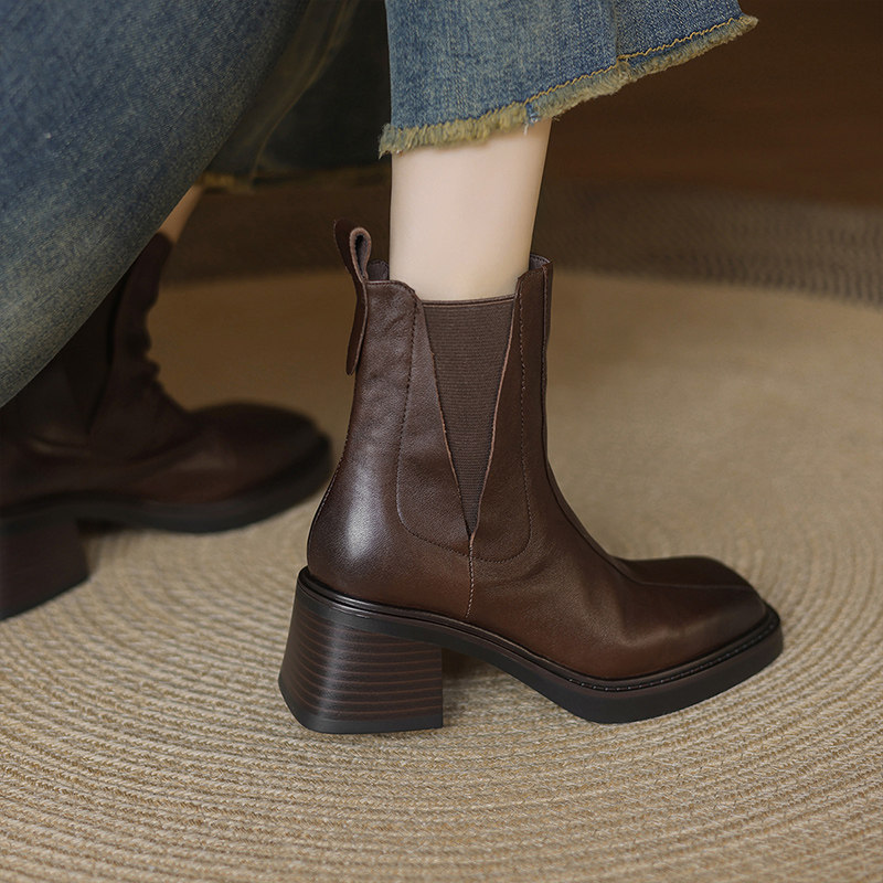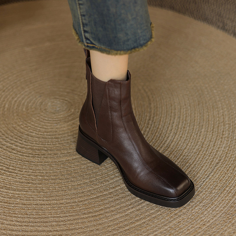 【明星推荐】阿么手工女鞋真皮弹力粗跟切尔西靴复古短靴秋冬新款