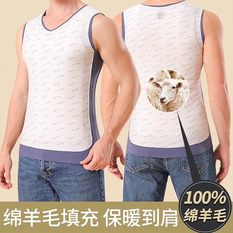奥康羊毛蚕丝保暖内衣男绒德无痕发热加绒加厚内穿打底背心冬上衣