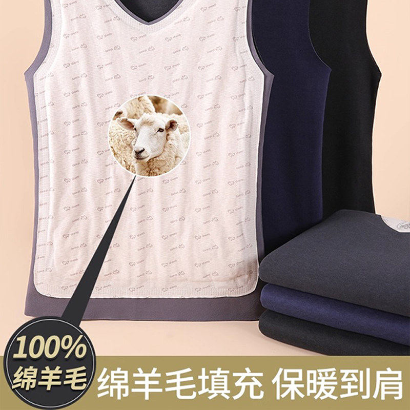 德绒保暖背心男士秋冬季加绒加厚羊毛无痕发热打底棉马甲无袖坎肩