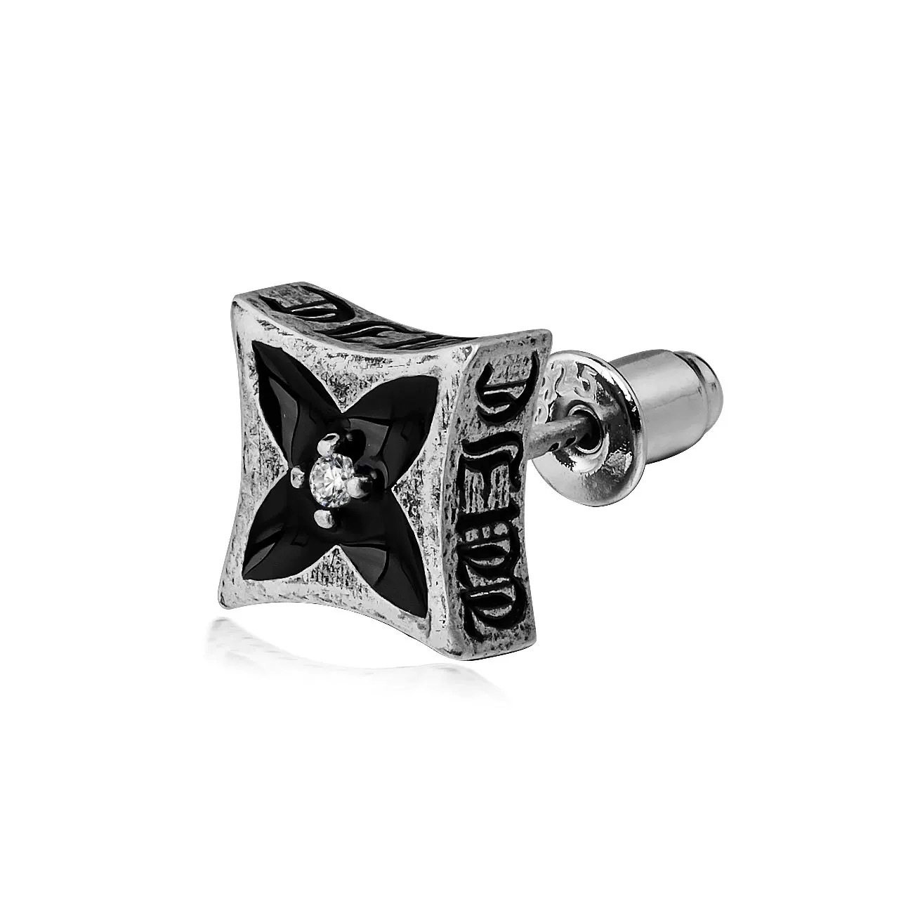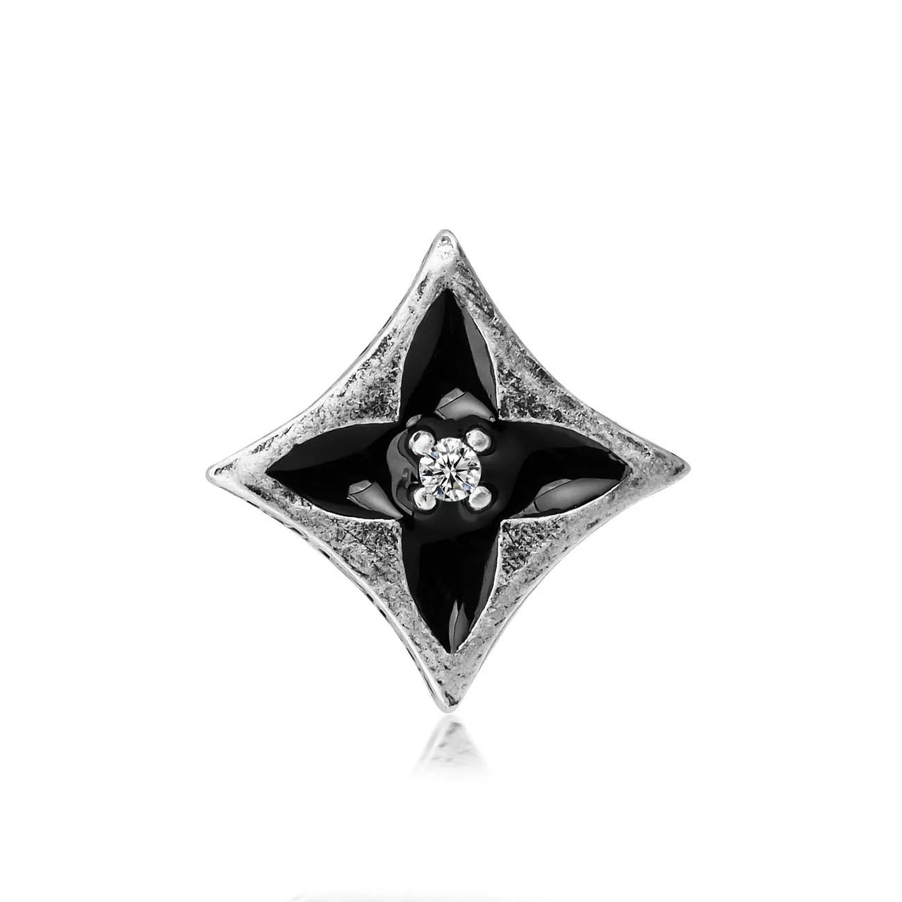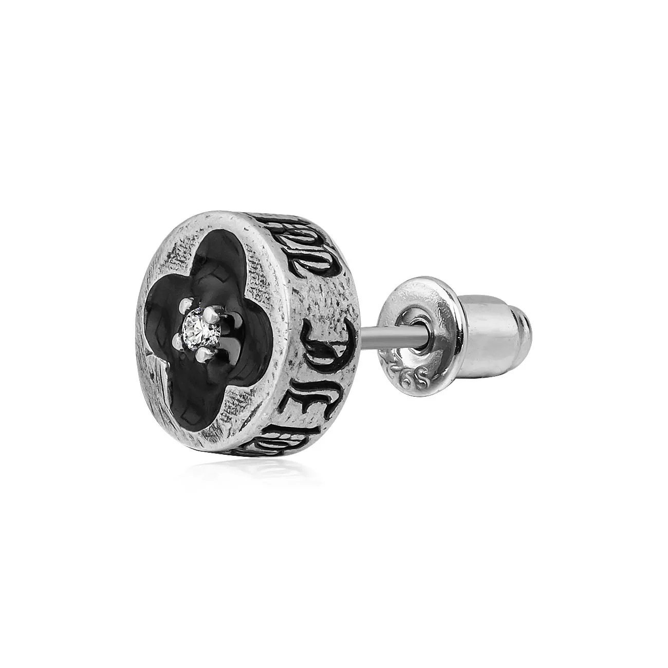 925银针珐琅刻雕四叶花耳钉时尚潮流饰品耳环好友礼物