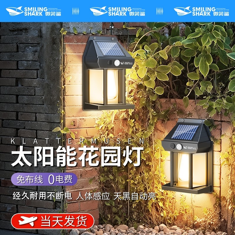 微笑鲨太阳能感应灯户外灯家用庭院灯自动超亮户外壁灯墙灯夜间