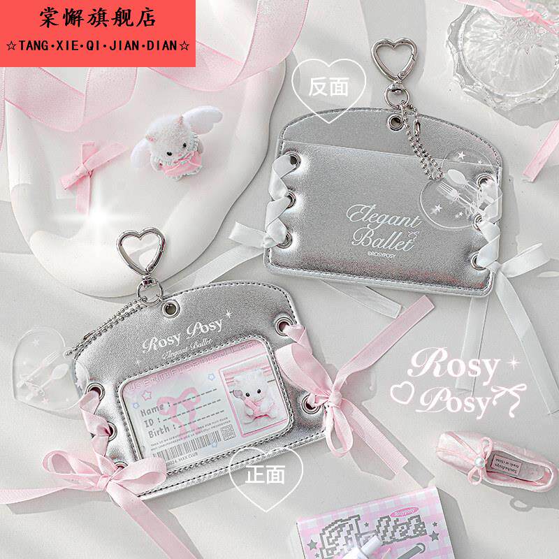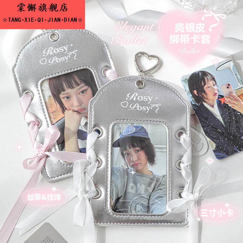 银色蕾丝芭蕾风追星卡套皮质饭卡校园卡小卡三寸高颜值书包挂件